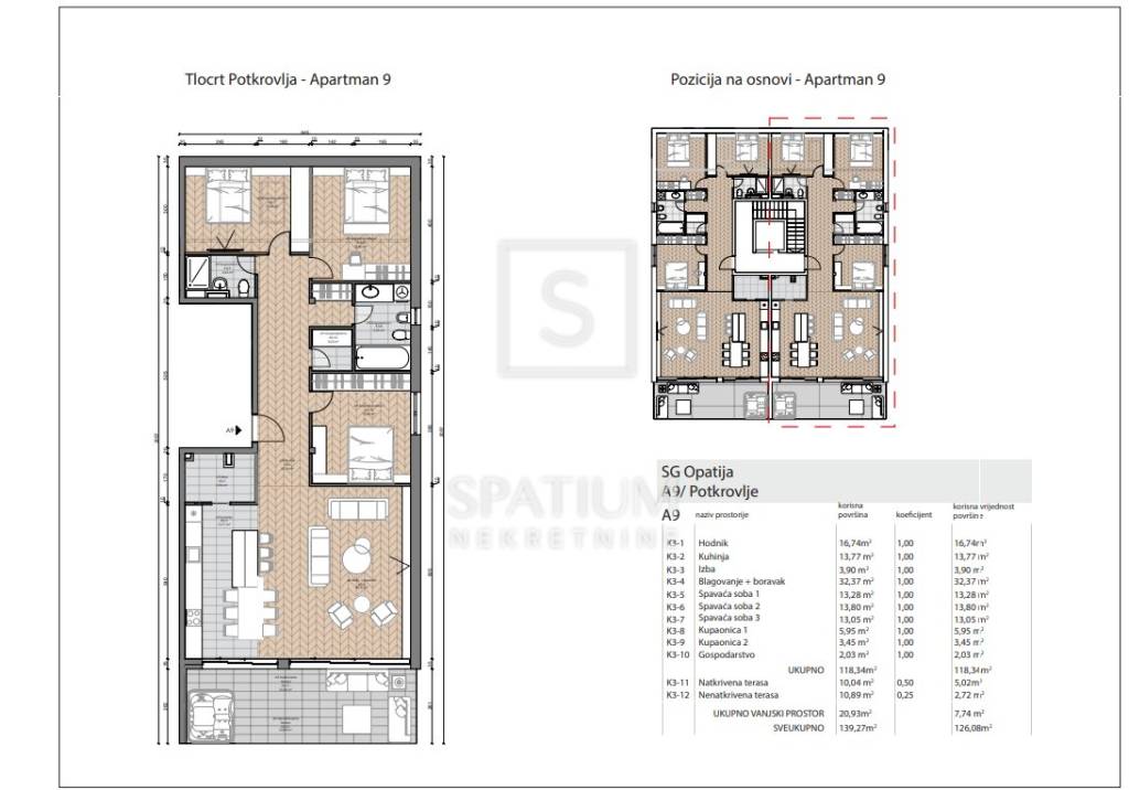OPATIJA, uns wurde eine luxuriöse Wohnung in einem neuen Gebäude im zweiten Stock in toller Lage angeboten. Es besteht aus einem Flur, einem Wohnzimmer mit Küche und Esszimmer, drei Schlafzimmern und zwei Badezimmern sowie einem Abstellraum mit einer Gesamtfläche von 118,34 m2. Die Wohnung verfügt über eine überdachte und nicht überdachte Terrasse. Es wird mit erstklassigen Fußböden, Sanitärartikeln, Aluminiumschreinereien und Türen ausgestattet. Darüber hinaus wird das Gebäude über eine Tiefgarage und einen Aufzug verfügen. Einzugsfrist ist: 6/2025. Opatija, eine wunderschöne Küstenstadt an der Adria und berühmter Kurort aus dem 19. Jahrhundert, ist ein beliebtes Reiseziel für Touristen aus aller Welt. Die Stadt ist von einzigartigen Naturschönheiten umgeben. Es liegt unterhalb des Berges Učka, der ein beliebtes Ziel für Bergsteiger und Wanderer ist. Es liegt am Übergang zwischen der grünen Region Istriens und der Küste und bildet ein perfektes Gleichgewicht der Landschaft. Die Stadt bietet einen wunderschönen Blick auf das Meer und die nahegelegenen Inseln Krk und Cres. Es ist umgeben von charmanten historischen Städten mit engen Gassen und einer reichen Geschichte. Opatija ist mit einer Vielzahl ungewöhnlicher Sehenswürdigkeiten, zahlreichen Stränden und klarem Meer geschmückt und die Straßen der Stadt sind übersät mit Häusern interessanter Architektur und Villen aus der Habsburgerzeit. Für alle weiteren Informationen können Sie uns gerne kontaktieren. Spatium nekretnine +385 51 272 903 +385 95/812-6476 info@spatium.hr