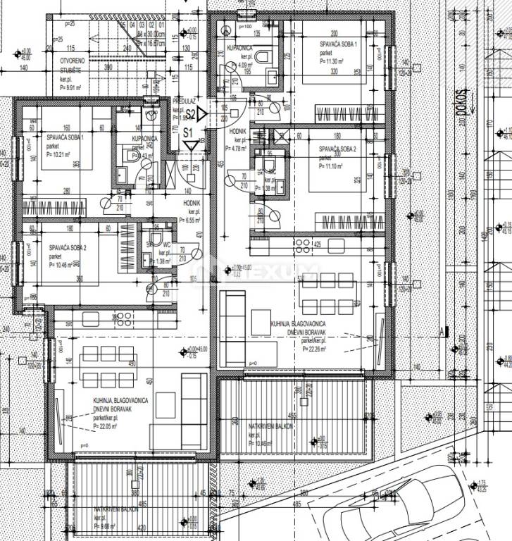 Zum Verkauf steht eine großzügige Zwei-Zimmer-Wohnung mit der Bezeichnung S2, mit einer Gesamtwohnfläche von 65,37 m². Davon entfallen 54,91 m² auf den Innenbereich und 10,46 m² auf den überdachten Balkon.