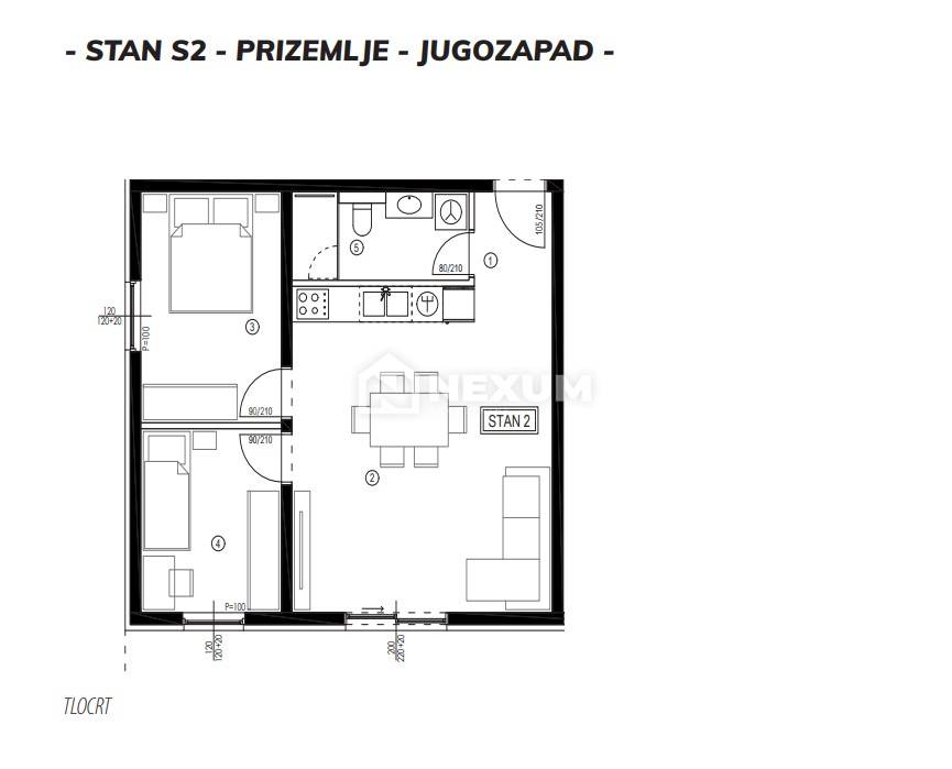 Zweizimmerwohnung mit Garten – 53,90 m² + Garten 152,69 m² | Kaštel Lukšić