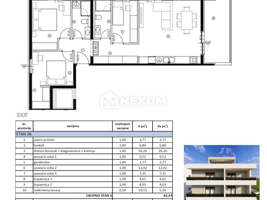 Dreizimmerwohnung mit zwei Badezimmern und überdachter Terrasse | Kaštel Lukšić