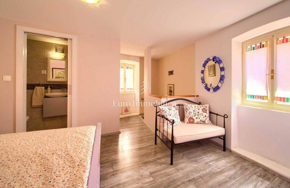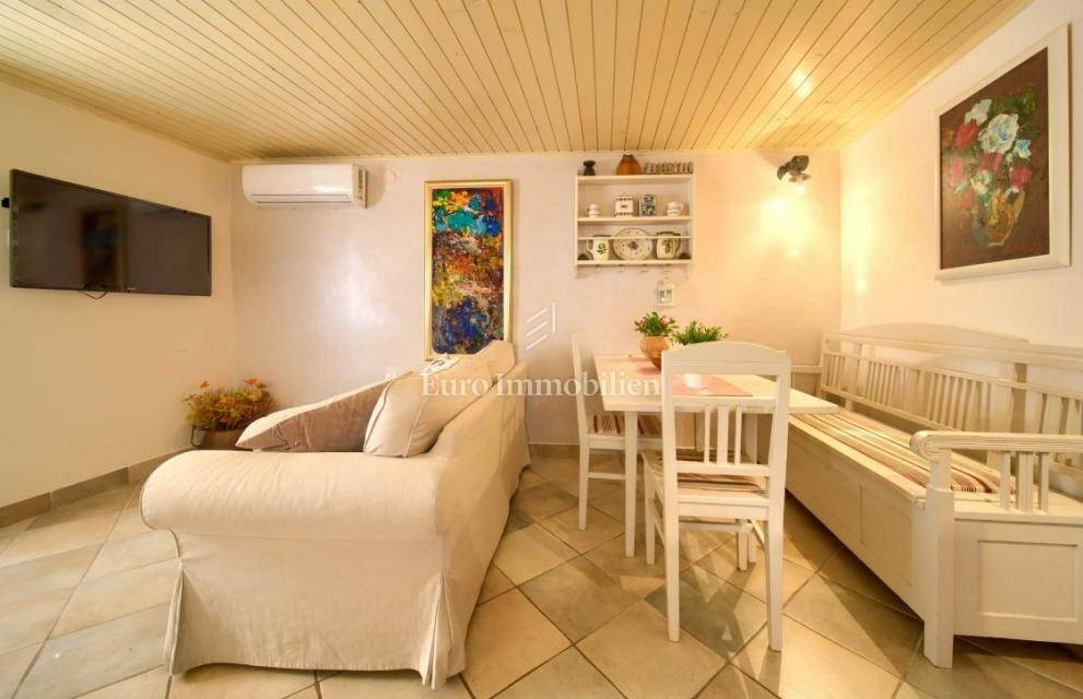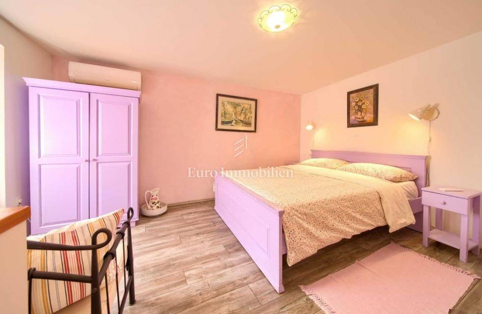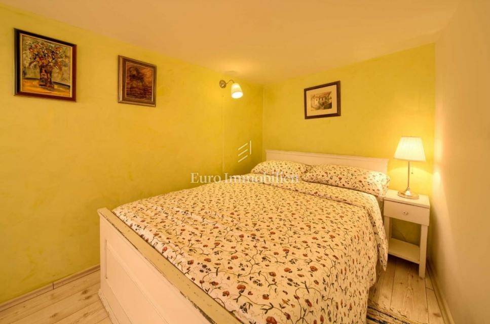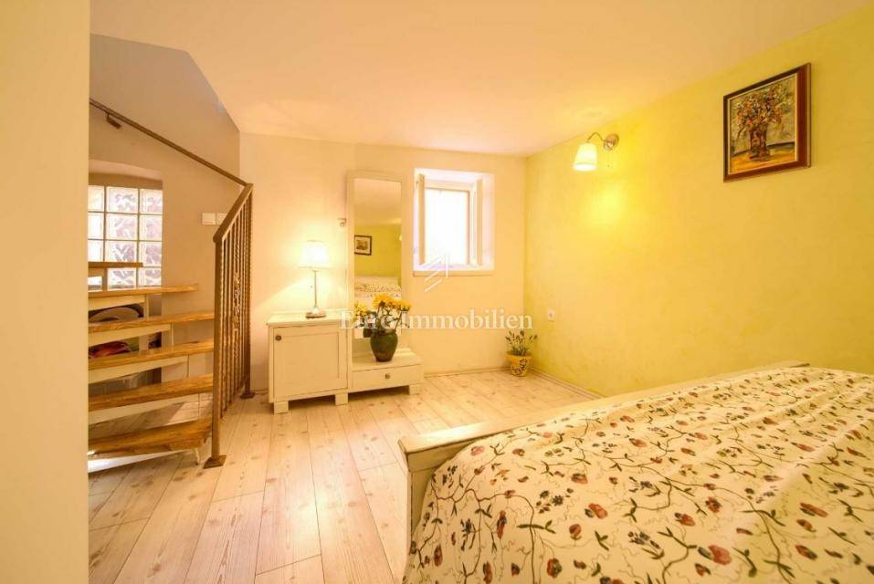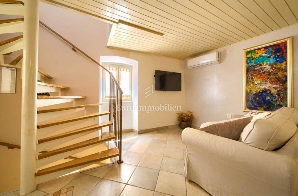 Insel Krk, Vrbnik, renoviertes Steinhaus zu verkaufen. Das 75 m² große Reihenhaus befindet sich in der Altstadt und erstreckt sich über insgesamt vier Etagen. Im Erdgeschoss befindet sich eine Eingangsterrasse mit Zugang zum Wohnzimmer mit Küche und Essbereich. Im ersten und zweiten Stock befinden sich jeweils ein Schlafzimmer mit Bad. Die Etagen sind durch eine Innentreppe miteinander verbunden, und das Untergeschoss verfügt über einen separaten Eingang mit der Möglichkeit, den restlichen Wohnbereich zu verbinden. Das Haus wird komplett möbliert und bezugsfertig verkauft. Eine Gelegenheit, eine Immobilie in der Altstadt unweit aller notwendigen Annehmlichkeiten zu erwerben. Parken ist auf einem öffentlichen Parkplatz möglich.