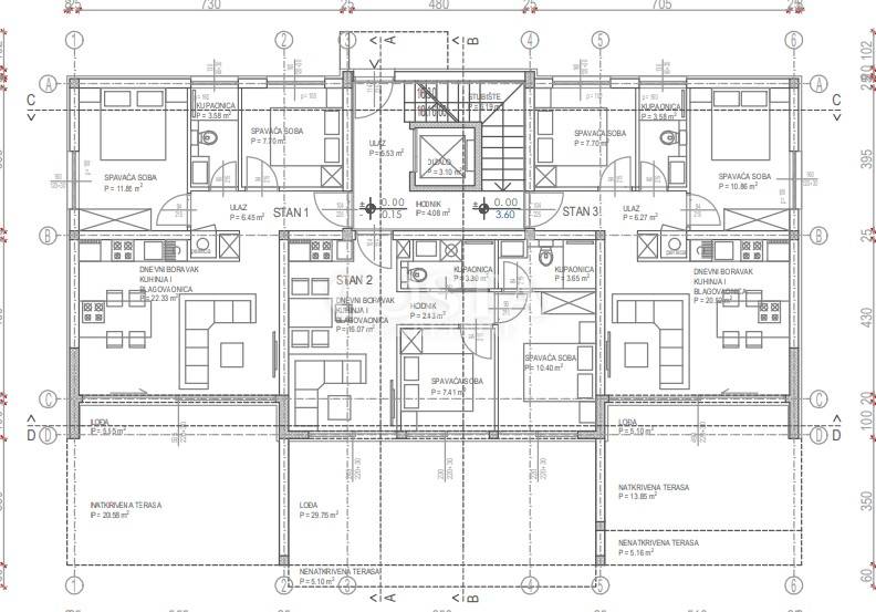 Zum Verkauf steht eine Wohnung im ersten Stock eines neu erbauten und vollständig fertiggestellten Luxuswohngebäudes, nur 20 Meter vom Meer in Zaton entfernt. Das Gebäude umfasst sechs Apartments und zwei Penthäuser, ausgeführt mit hochwertigen Materialien und modernen architektonischen Lösungen.