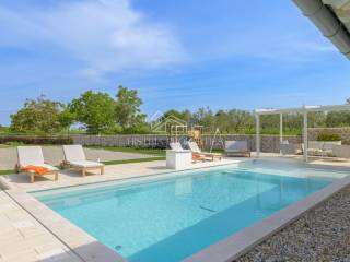 Die Villa ist in einem unverwechselbaren Stil erbaut, teilweise mit Stein verkleidet und mit rustikalen Fensterläden, die sich perfekt in die Landschaft einfügen.