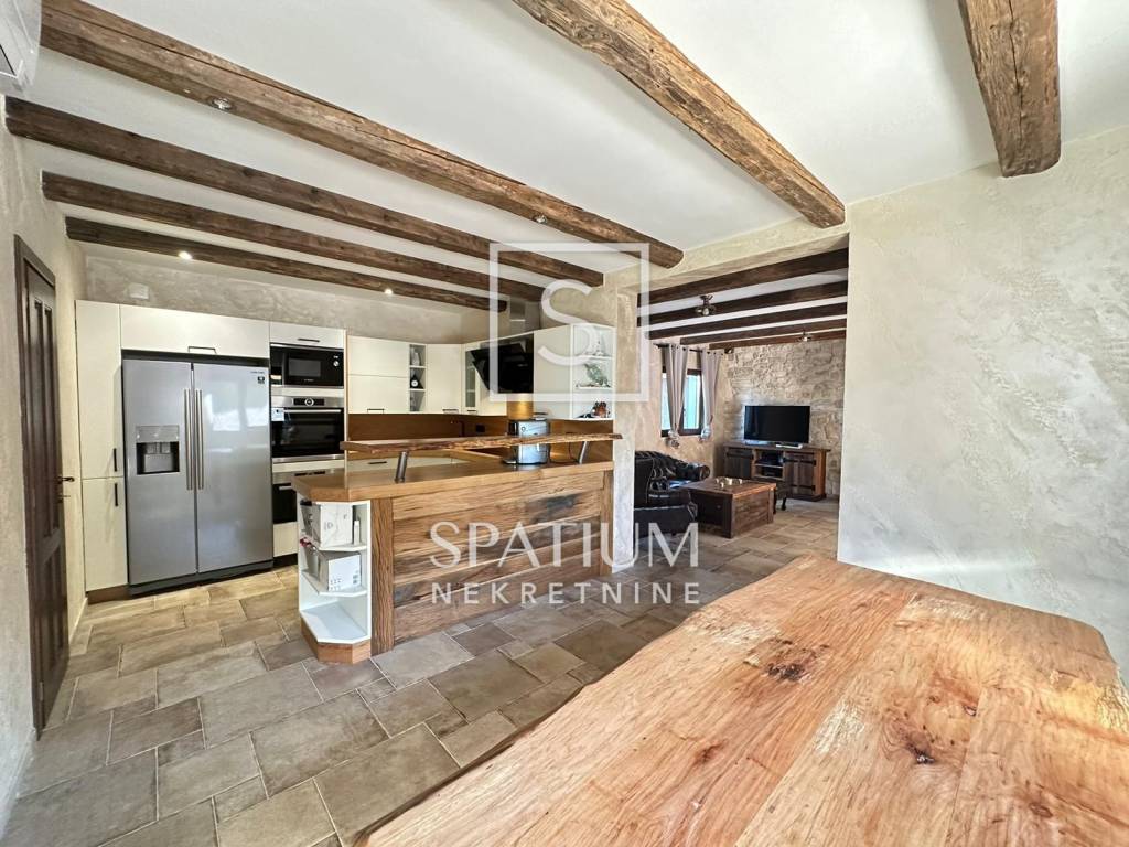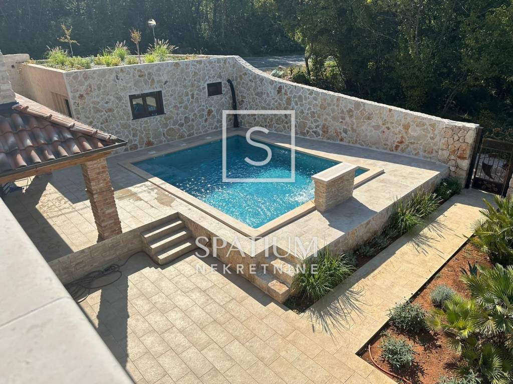 INSEL KRK, DOBRINJ, wir bieten ein neu renoviertes Haus mit Garten und Swimmingpool an. Es besteht aus drei Schlafzimmern, drei Badezimmern, davon zwei in den Schlafzimmern, Küche, Esszimmer und Wohnzimmer. Das Grundstück hat eine Fläche von 150 m2, davon 220 m2 mit Taverne und Vordächern auf einem Grundstück von ca. 450 m2. Vaillant-Fußbodenheizung im gesamten Haus, deutsche Tischlerei Salamander, Dreischichtglas, hochwertige Materialien verwendet, Mitsubishi Klime, Videoüberwachung. Die Möbel sind handgefertigt aus massiver Eiche, die Wände sind in einer speziellen Technik gefertigt. Auf der Terrasse gibt es außerdem einen Whirlpool und einen 32,5 Quadratmeter großen Mosaikpool mit Wasserfall, Salzwasser und Heizung. Ein Steingitter und Eingangstore, speziell bestellt und einzigartig gefertigt. Parkmöglichkeiten für bis zu 5 Fahrzeuge und überdacht. 1/1 saubere Papiere und Eigentum Dobrinj ist eine Siedlung und Gemeinde in Kroatien. Es liegt in der Gespanschaft Primorje-Gorski Kotar im nordöstlichen Teil der Insel Krk. Die Gemeinde Dobrinj umfasst einen großen Teil der Ostküste der Insel Krk, gegenüber Crikvenica und Vinodol auf dem Festland, mit denen sie seit jeher eng verbunden ist. Die Küste ist gegliedert, aber außer dem Riff und den Felsen gibt es nur eine kleine Insel – Školjić Veli. An der Küste sticht die flache Bucht Soline hervor, fast ein See mit niedrigen Ufern, an der sich drei Siedlungen befinden: Klimno, Soline und Čižići. Weitere, deutlich kleinere Buchten sind: Stipanja, wo sich die größte Gemeindesiedlung Šilo, Petrina, Veterna, Murvenica, Jazbina, Lončarica und Slivanjska befinden. Für weitere Informationen wenden Sie sich vertrauensvoll an einen Agenten. Silvio Orešković lizenzierter Vertreter +385 99 2358 666 silvio@spatium.hr Spatium nekretnine +385 51 272 903 info@spatium.hr