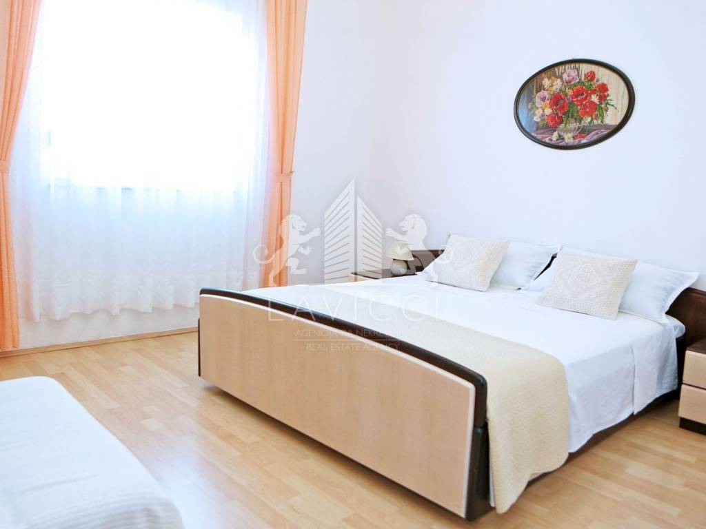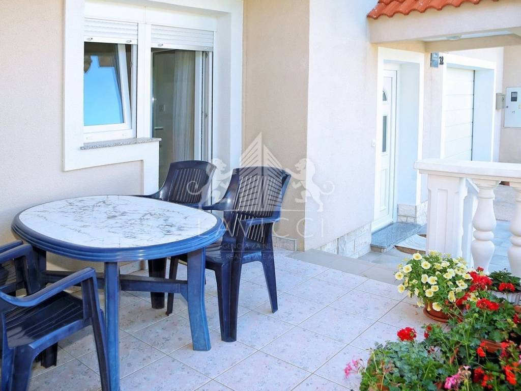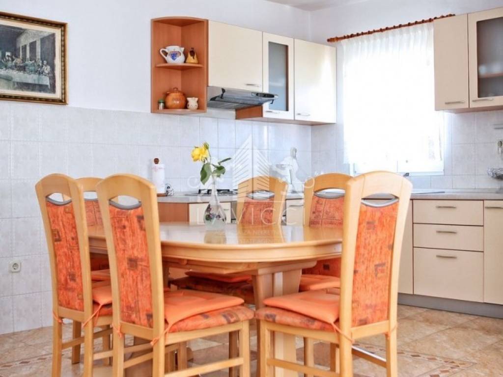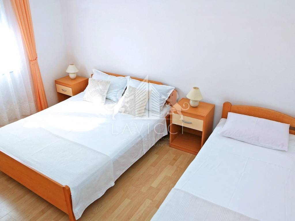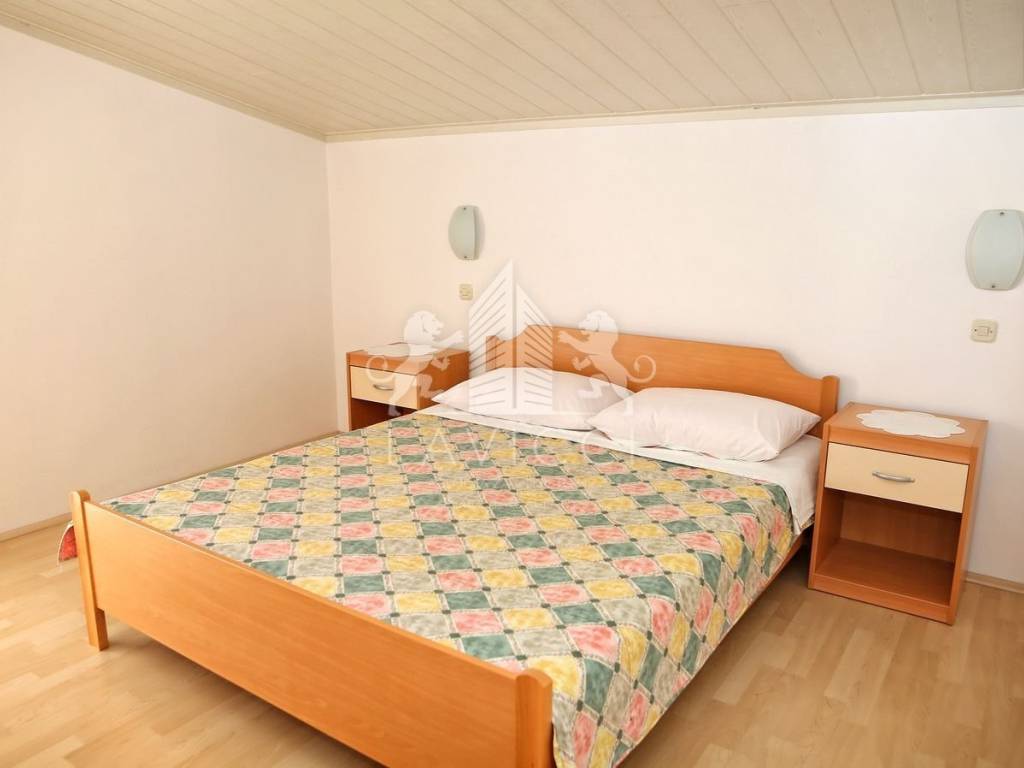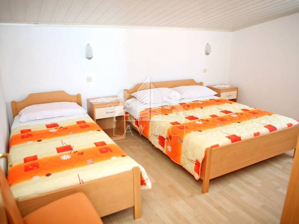 Zum Verkauf steht ein Mehrfamilienhaus in Vlašići auf der Insel Pag, nur 50 m vom Meer und Strand entfernt. Das Haus mit insgesamt 5 Wohneinheiten befindet sich auf einem 680 m2 großen Grundstück. Die gesamte Bruttofläche des Hauses beträgt 339 m2, der Parkplatz und der angelegte Garten machen 514 m2 aus. Im Erdgeschoss des Hauses befinden sich eine Garage von 20 m2 und zwei Wohnungen, eine davon ist eine Einzimmerwohnung mit Küche, Esszimmer, Wohnzimmer und überdachtem Balkon. Die zweite Wohnung verfügt über zwei Schlafzimmer und einen Wohnbereich bestehend aus Küche und Esszimmer mit Zugang zu einem überdachten Balkon. Über eine Innentreppe gelangt man in den ersten Stock, wo sich eine komfortable Dreizimmerwohnung mit geräumigem Wohnbereich, zwei Bädern mit WC und einer großen Terrasse mit Meerblick befindet. Auf derselben Etage befindet sich ein weiteres Studio-Apartment. Im Dachgeschoss befindet sich eine Zweizimmerwohnung mit großem Wohnzimmer, Küche und Esszimmer sowie Bad mit WC und Loggia. Das Haus wurde 2022 teilweise renoviert, wobei eine Styroporfassade und PVC-Tischlerei mit ALU-Rollläden und Rollläden an den Balkontüren eingebaut wurden. Alle Apartments sind mit einer Klimaanlage zum Heizen und Kühlen ausgestattet. Durch den eingebauten Kamin besteht die Möglichkeit mit Holz zu heizen. Es wird komplett möbliert und ausgestattet verkauft und ist abholbereit. Vor dem Haus gibt es Parkplätze für mehrere Fahrzeuge, einen wunderschön angelegten Garten mit viel Grün und hinter dem Haus eine ausgestattete Sommerküche mit Grill und einem Außentisch für mehrere Personen. Es besteht die Möglichkeit, ein Schwimmbad zu bauen. Eigentum und Dokumentation in Ordnung!