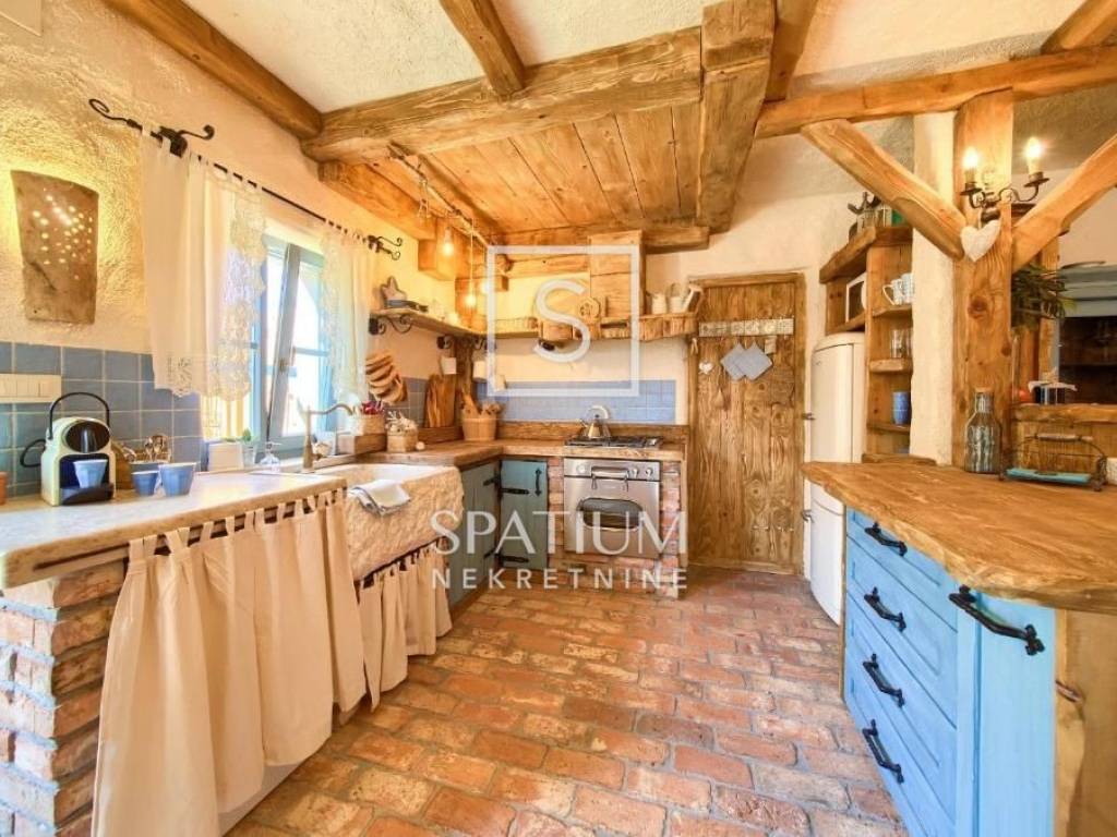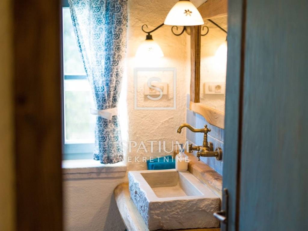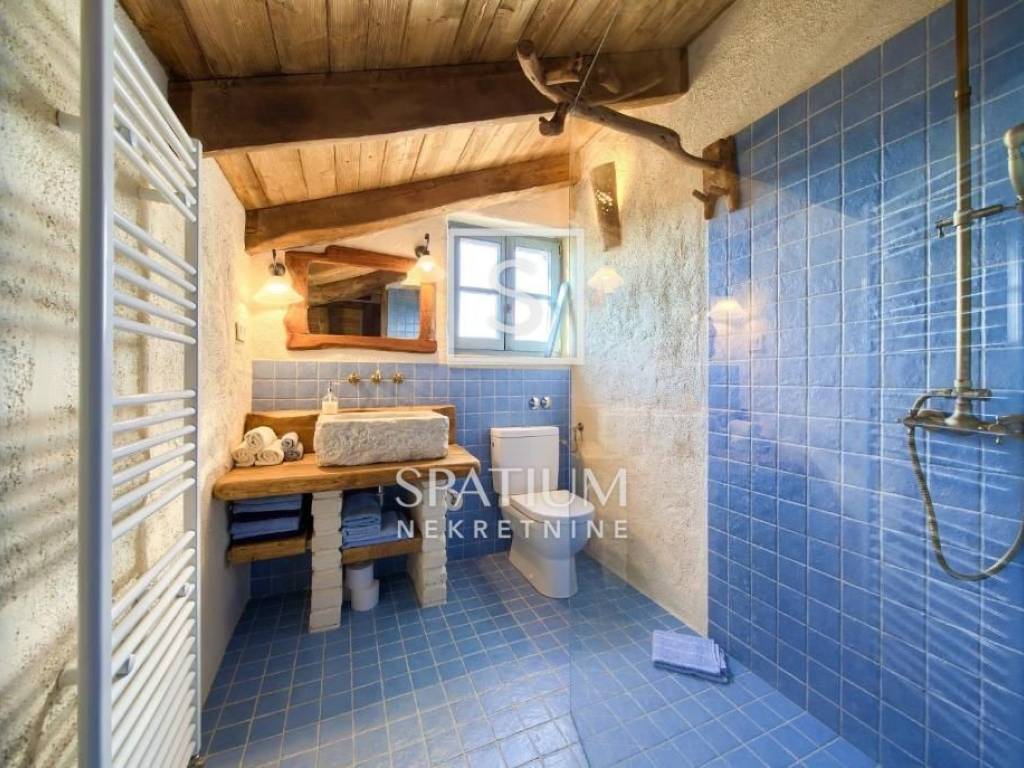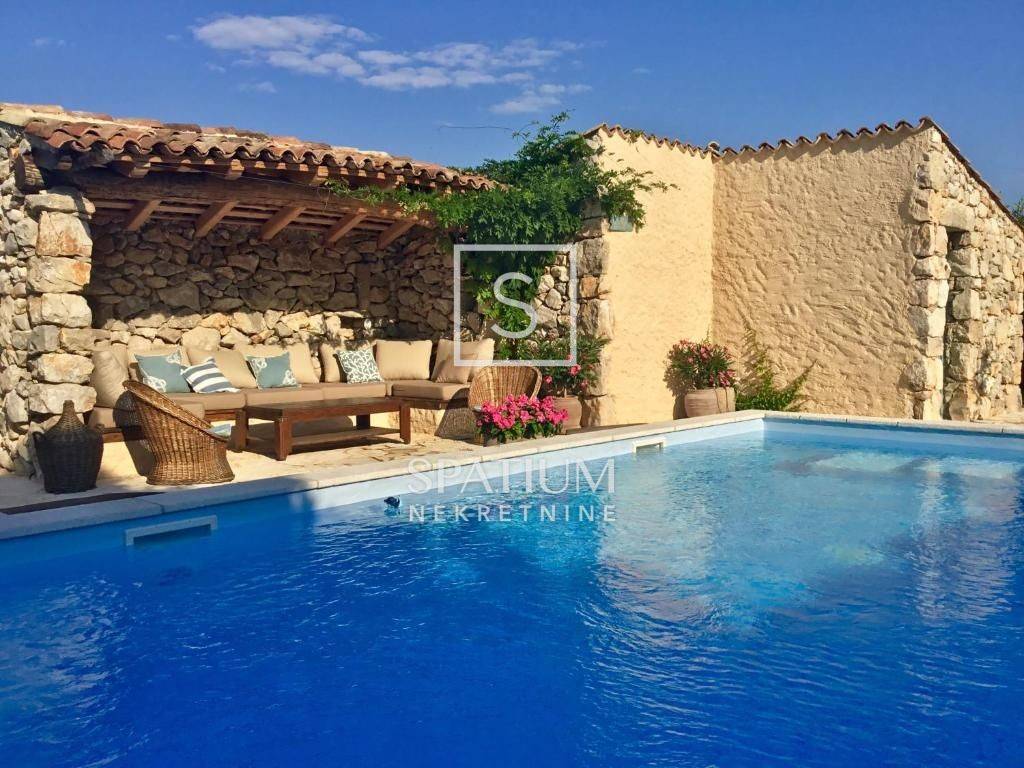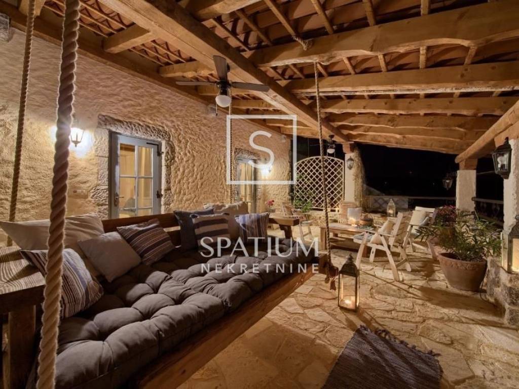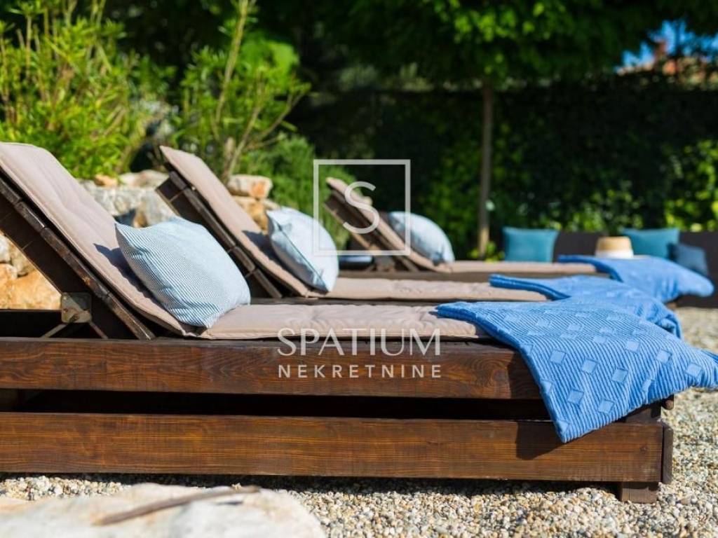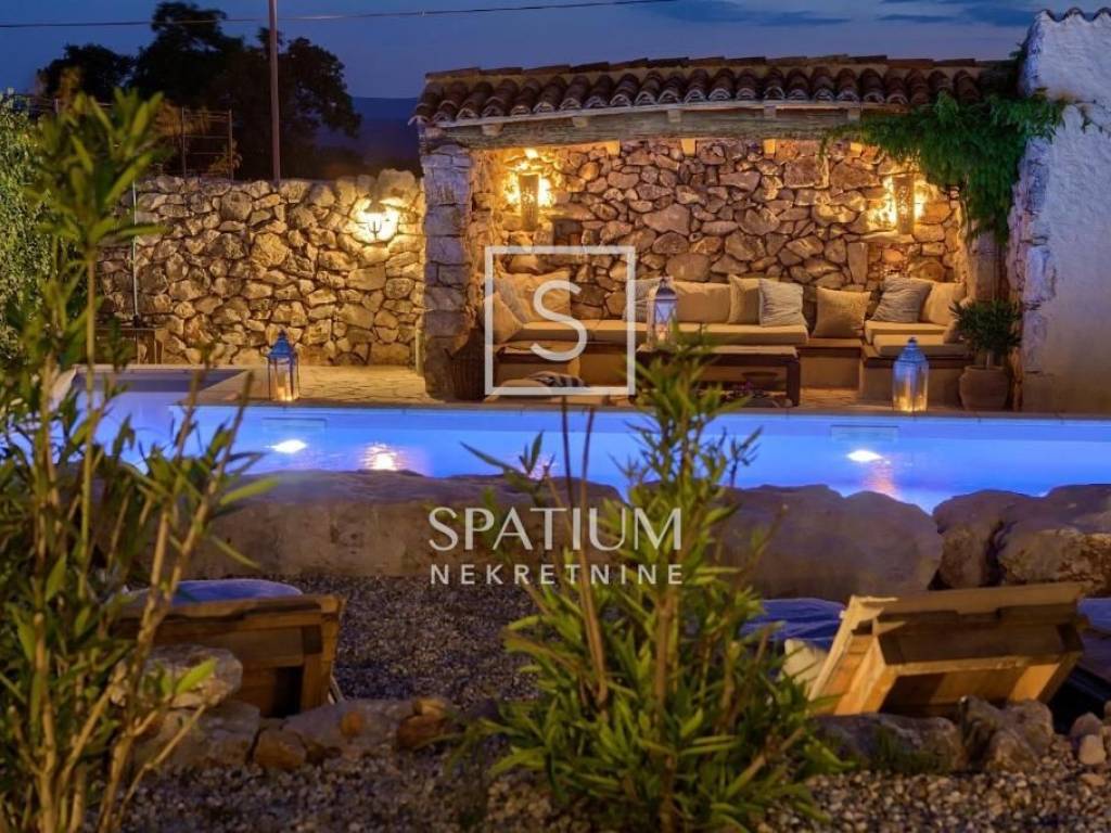 MALINSKA, Wir haben eine rustikale Steinvilla mit Swimmingpool und Meerblick in einem ruhigen Teil der Stadt angeboten. Das Erdgeschoss besteht aus einem Eingangsbereich, Küche und Esszimmer sowie einem geräumigen Wohnzimmer mit Kamin und Ausgang zur Loggia. Im ersten Stock befinden sich zwei Schlafzimmer und ein Badezimmer. Jedes Zimmer hat einen eigenen Ausgang zur überdachten Terrasse, die einen schönen Blick auf das Meer bietet. Im Dachgeschoss befinden sich zwei weitere Schlafzimmer und ein Badezimmer. Im weitläufigen Garten gibt es ein Nebengebäude – einen Weinkeller, einen Swimmingpool und zwei Parkplätze, einen Steintisch mit Steinbänken für zehn Personen und einen Grill. Die Immobilie ist eine ideale Investitionsmöglichkeit, kategorisiert für touristische Vermietung, sowie die Möglichkeit für ein langfristiges Familienleben.