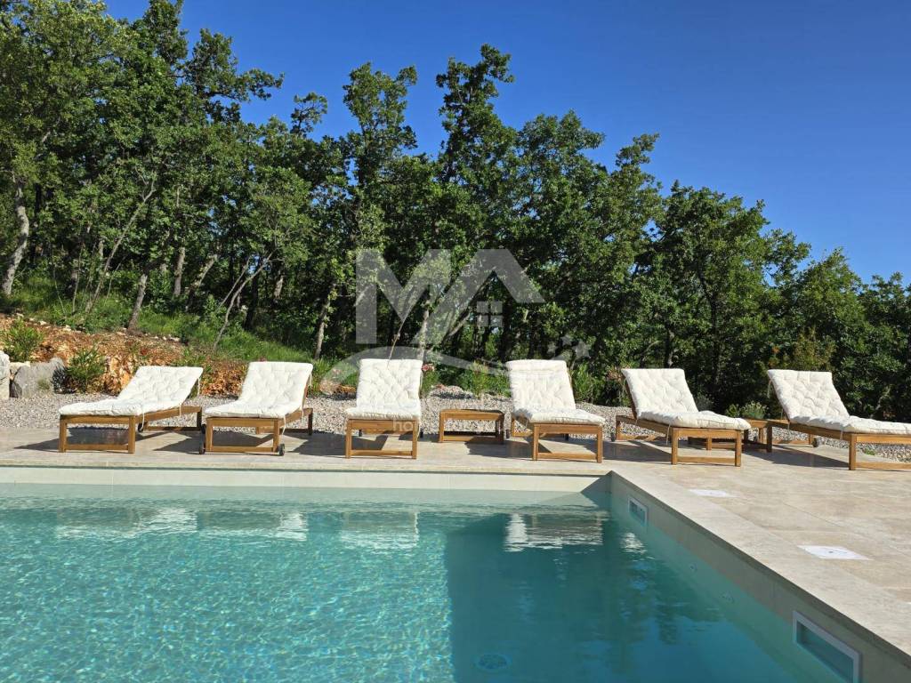 Auf der mit Stein gepflasterten Terrasse der Villa gibt es einen schönen Swimmingpool mit einer Tiefe von 1,7 m, dann eine Hydromassagewanne (Jacuzzi) für 6 Personen, acht Liegestühle zum Sonnenbaden mit Kissen, einen Esstisch im Freien aus Slawonische Eiche und ein gemauerter Steingrill im Freien.