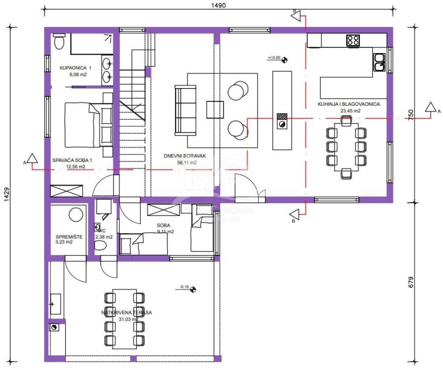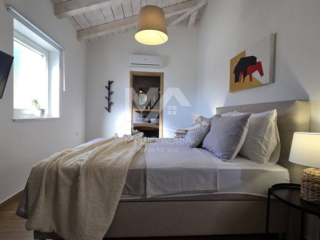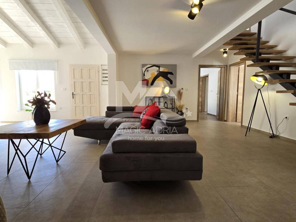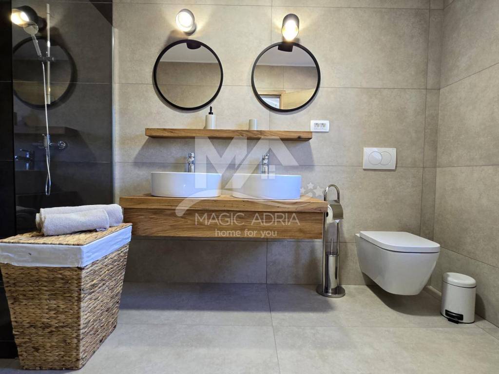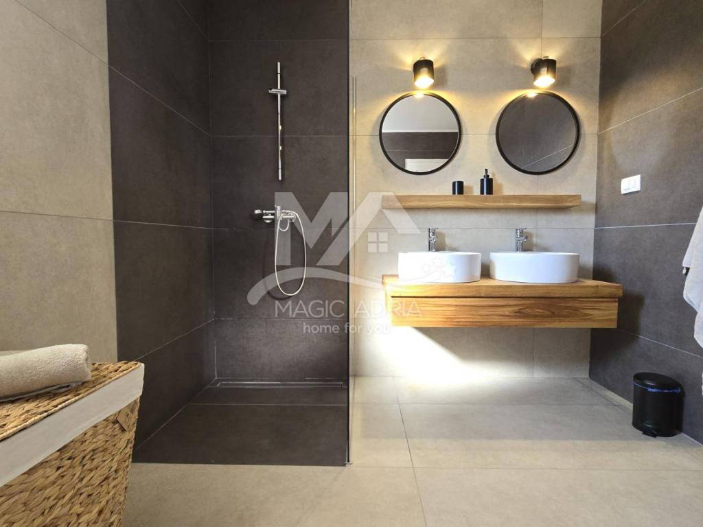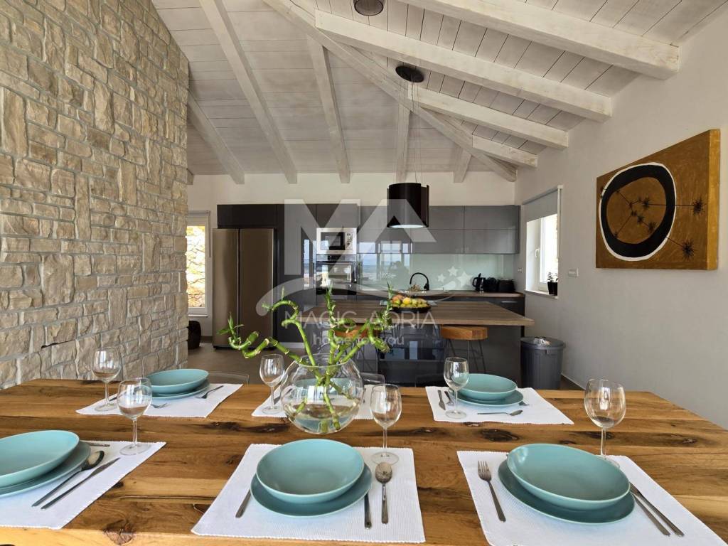Die Villa wurde aus istrischem Kanfanar-Stein gebaut und besteht aus einem Hauptgebäude mit einer Fläche von 200 m2, einer Garage von 36 m2, einem Maschinenraum von 10 m2 und einem großen beheizten Pool von 35 m2.
