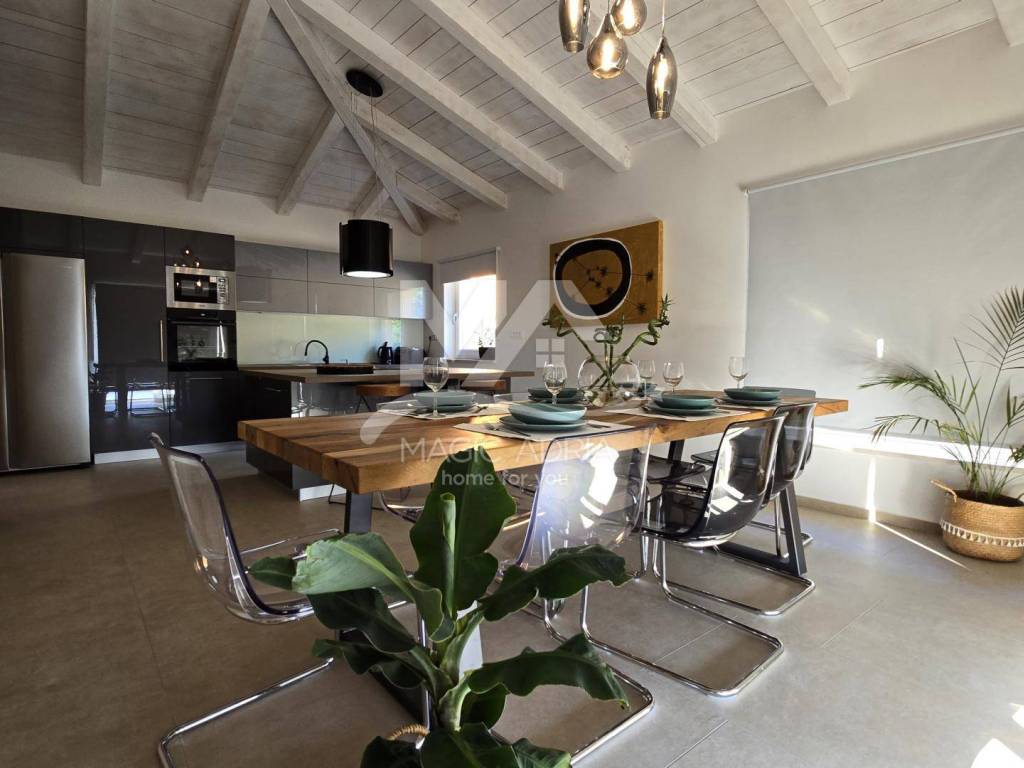 Im Erdgeschoss der Villa befinden sich zwei Schlafzimmer, ein geräumiges, helles Wohnzimmer mit einem zusätzlichen Schlafsofa für zwei Personen und eine moderne Küche mit Esszimmer.