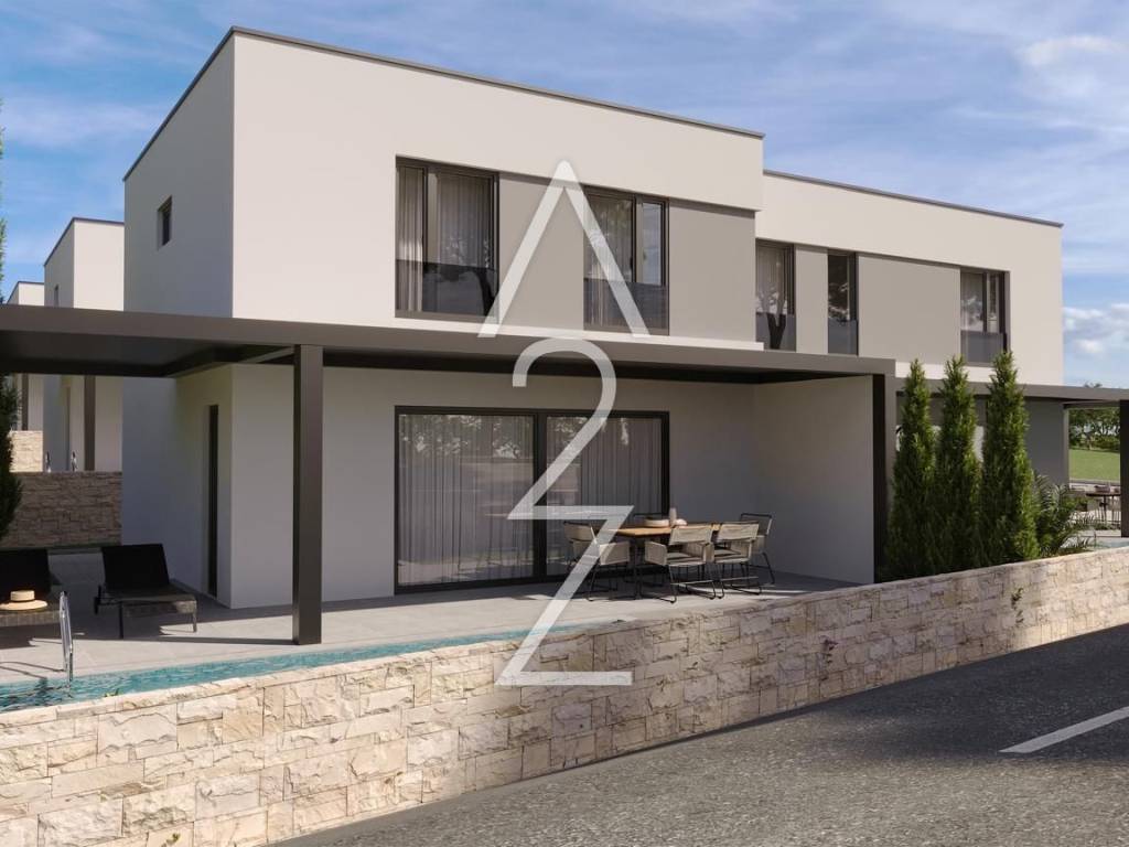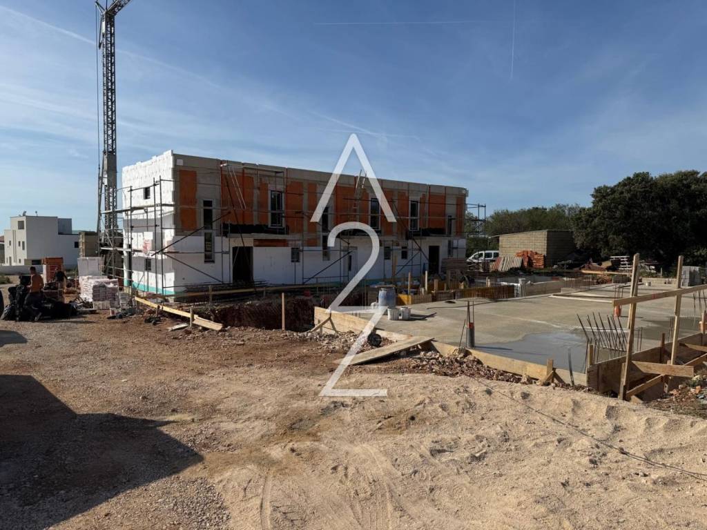 Mandre und die Schönheit der Insel Pag sind weithin bekannt – und nun haben Sie die Gelegenheit, Eigentümer dieser wunderschönen Neubauimmobilie zu werden. Im Rahmen eines Projekts mit acht Villen, von denen jede drei Reihenhäuser umfasst, steht dieses Haus zum Verkauf. Es handelt sich dabei um eine vierzimmerige, zweigeschossige Wohnung mit einer Netto-Wohnfläche von 82,60 m². Die nicht überdachte, geflieste Terrasse misst 15 m², der begrünte Bereich ca. 9 m², der Pool 6*3 m, zwei Parkplätze 25 m² sowie ein zusätzlicher Hofbereich von 13 m². Die Gesamtverkaufsfläche der Immobilie einschließlich aller zugehörigen Anteile beträgt 102,17 m².