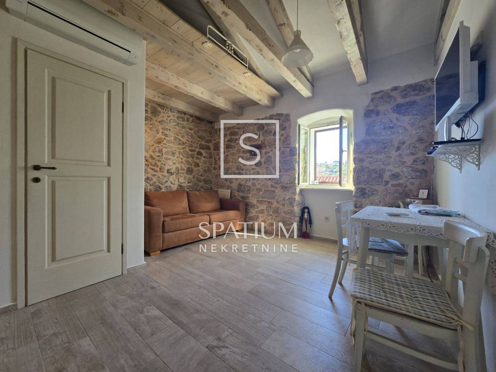 VRBNIK, INSEL KRK. Wir bieten ein Reihenhaus in äußerst interessanter Lage im Zentrum an. Da eine Komplettrenovierung erforderlich ist, kann das bestehende Dach durch den Austausch ausreichend hochgezogen werden, um zusätzlichen Wohnraum im Obergeschoss zu schaffen. Die gesamte Wohnfläche beträgt dann 60 m², verteilt auf Erdgeschoss, Obergeschoss und Dachgeschoss.