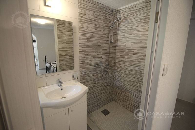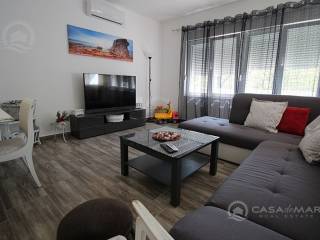 Es besteht aus zwei Wohnungen, von denen eine über zwei Schlafzimmer, ein Wohnzimmer, eine Küche mit Esszimmer, ein Badezimmer, eine Toilette, einen Abstellraum und eine Terrasse verfügt und die andere über zwei Schlafzimmer, ein Wohnzimmer und eine Küche verfügt mit einem Esszimmer, einem Badezimmer und einem Balkon.
