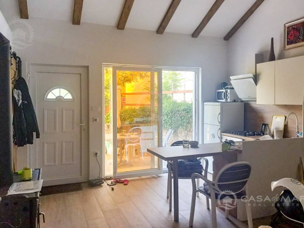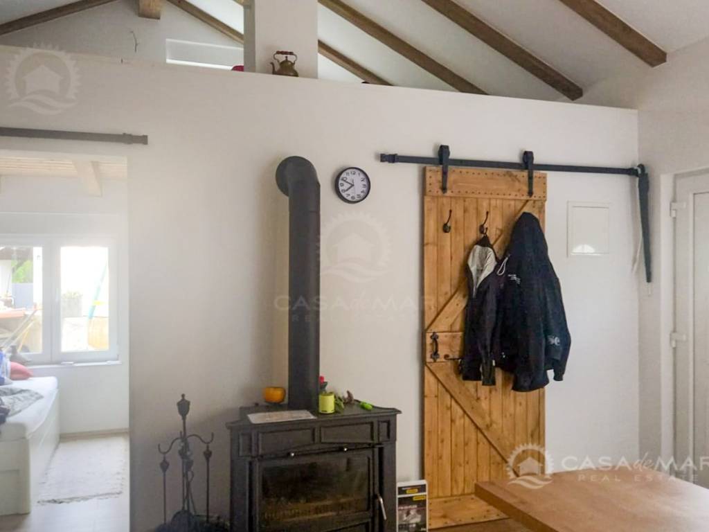 Das Haus besteht aus einem Wohnzimmer, einer Küche mit Zugang zur Terrasse, einem Badezimmer und zwei Schlafzimmern, von denen sich eines auf der Galerie befindet.