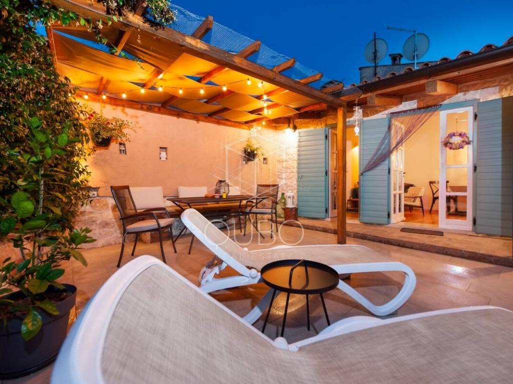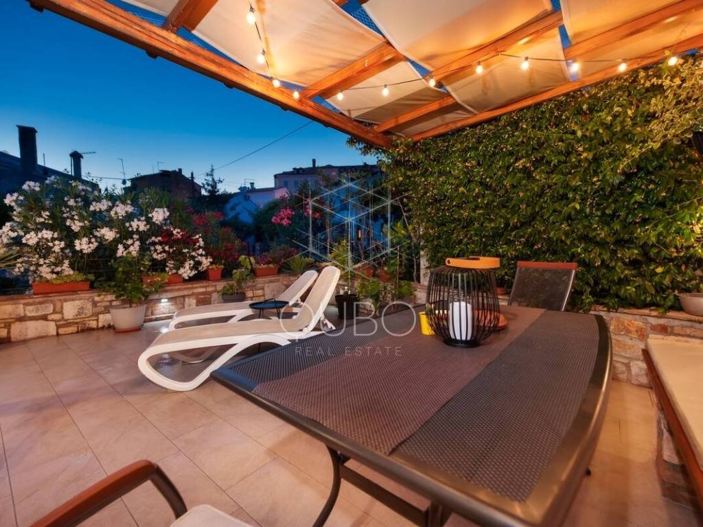 Mitten in der romantischen Altstadt von Rovinj erwartet Sie dieses charmante Schmuckstück – ein komplett renoviertes Steinhaus auf zwei Etagen mit privater Terrasse von 36 m², die wie ein geheimer Garten wirkt.