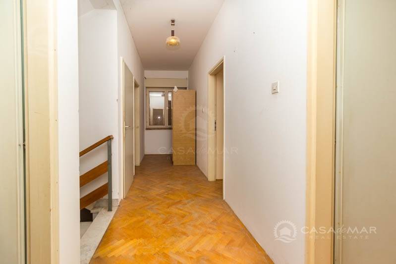 Es besteht aus zwei separaten Gebäuden, von denen sich eines im Untergeschoss befindet, das aus zwei Schlafzimmern, einem Wohnzimmer mit Küche und Essbereich, einem Badezimmer, einem Abstellraum und einer Garage besteht.Das größere Gebäude ist im Grunde ein Einfamilienhaus mit 3 Stockwerken. Das Erdgeschoss verfügt über eine Küche mit Essbereich und ein Wohnzimmer mit Zugang zu einer großen Terrasse und zwei Schlafzimmern. Auf der ersten Etage befinden sich außerdem zwei Schlafzimmer und eine Küche mit Essbereich, ein Wohnzimmer mit Balkon und ein Badezimmer.Der hohe Dachboden kann auch eingerichtet werden, da die Installationen durchgeführt wurden. Das Haus hat ein Nebengebäude, in dem sich eine Sommerküche mit Bad, Speisekammer und Wohnzimmer befindet.Dem neuen Eigentümer steht eine große Garage für zwei Autos und ein Parkplatz für 5 weitere Fahrzeuge im Hof zur Verfügung.