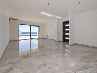 Zum Verkauf steht eine moderne Maisonette-Wohnung im Erdgeschoss und ersten Stockwerk eines hochwertigen Neubaus in Crikvenica, nur 400 Meter vom Meer entfernt. Diese Immobilie bietet Privatsphäre, Komfort und einen spektakulären Meerblick. Bereits vom Erdgeschoss und dem angelegten Außenbereich aus genießen Sie Meerblick, während sich vom Obergeschoss ein einzigartiger, unvergleichlicher Panoramablick auf das Meer eröffnet.