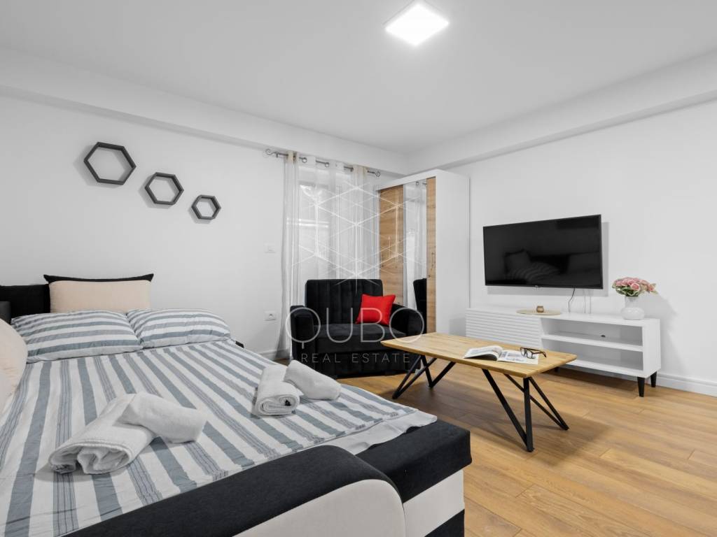 Die Wohnung besteht aus einem Wohnbereich mit Küche und Esszimmer in einem offenen Raum, einem Schlafzimmer und einem Badezimmer. Sie ist vollständig klimatisiert und verfügt über einen gesicherten Parkplatz.