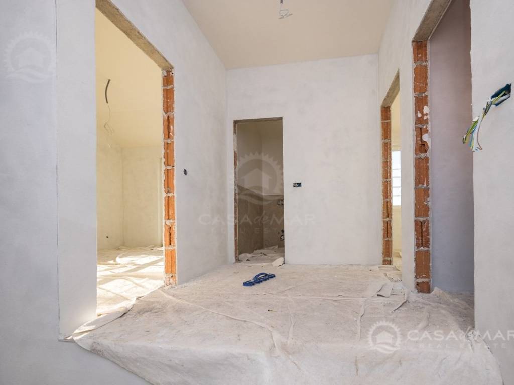 Das Erdgeschoss des Hauses besteht aus einem Wohnzimmer mit Küche und einem Esszimmer. Am Eingang befindet sich eine Toilette, zusätzlich wird die Küche um eine Speisekammer erweitert. Das Wohnzimmer führt zu einer überdachten Terrasse und einem Garten, der einen wunderbaren offenen Blick auf das Meer bietet. Im ersten Stock befinden sich drei Schlafzimmer, von denen eines ein eigenes Bad und ein Gemeinschaftsbad hat. Im Garten gibt eine geräumige Terrasse, ein Swimmingpool und ein Parkplatz.
