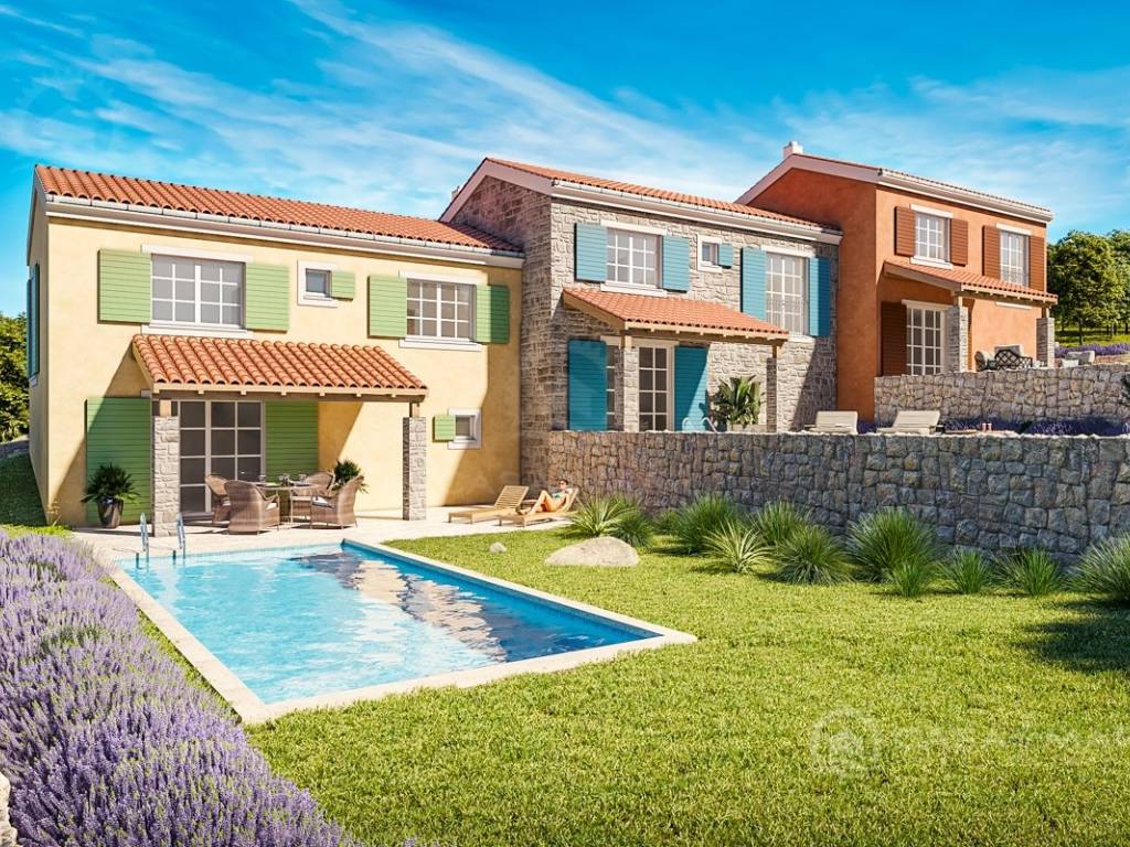 Ein im Bau befindliches Reihenhaus im mediterranen Stil mit einer Fläche von 105,87 m2 befindet sich in ruhiger Lage in Crikvenica.