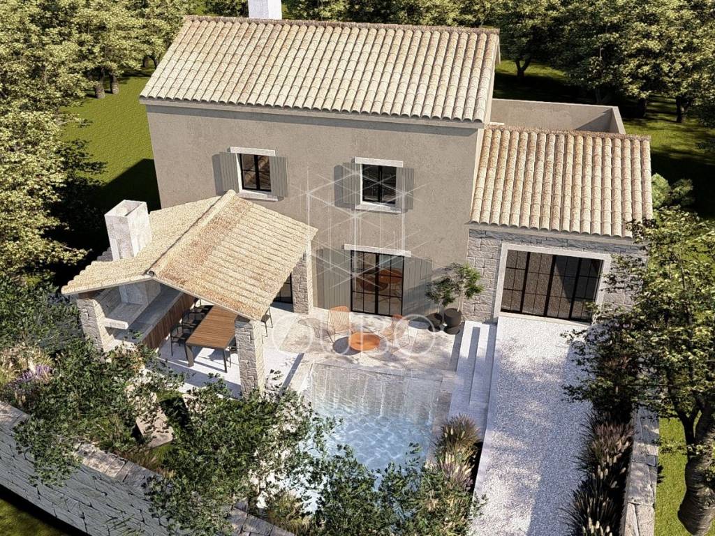 Der Hof mit 114 m² ist kompakt genug für Privatsphäre, bietet aber gleichzeitig ausreichend Platz für einen Garten, eine Terrasse oder eine Sommerküche. Das Haus ist an Strom und Wasser angeschlossen und verfügt zusätzlich über ein Konzeptdesign, das zeigt, wie dieses authentische istrische Steinhaus in ein wahres Märchenhaus verwandelt werden kann.