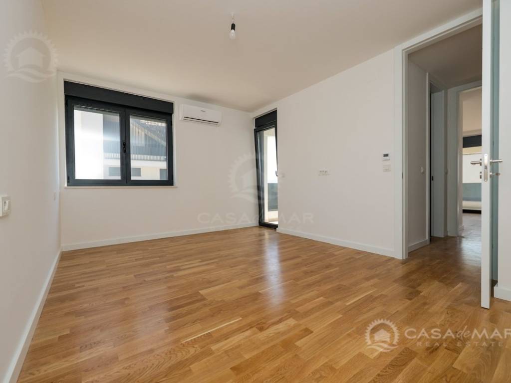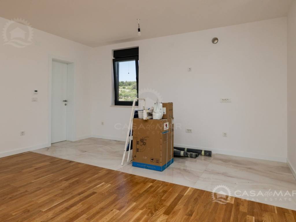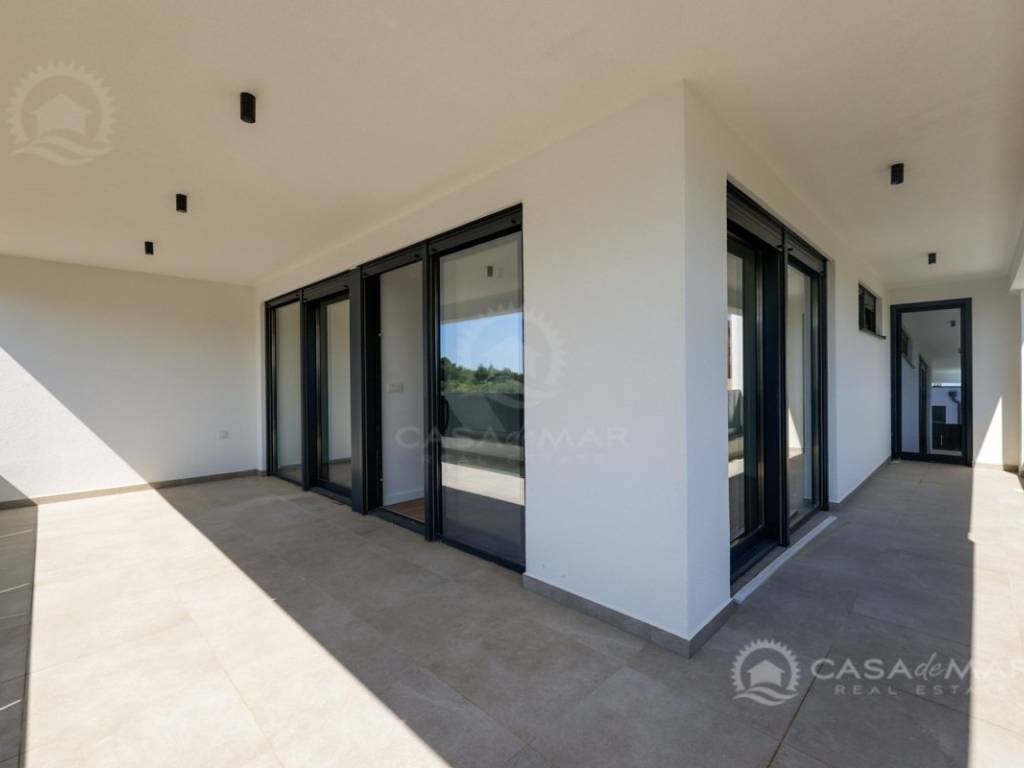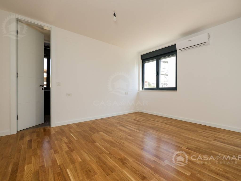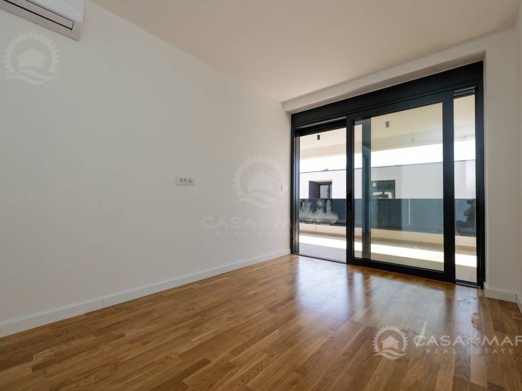 Das Apartment ist mit hochwertigen Parkett- und Keramikböden, modernen Badezimmern, ALU-Fenstern mit eingebauten Mückennetzen und elektrischen Rollläden ausgestattet. Die Beheizung und Kühlung erfolgt über eine Wärmepumpe, Fußbodenheizung und Klimaanlagen in jedem Raum, was ganzjährigen Komfort gewährleistet.