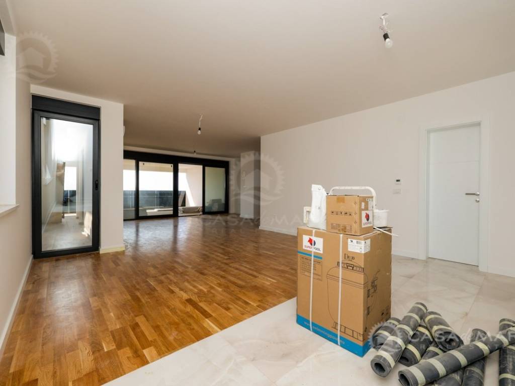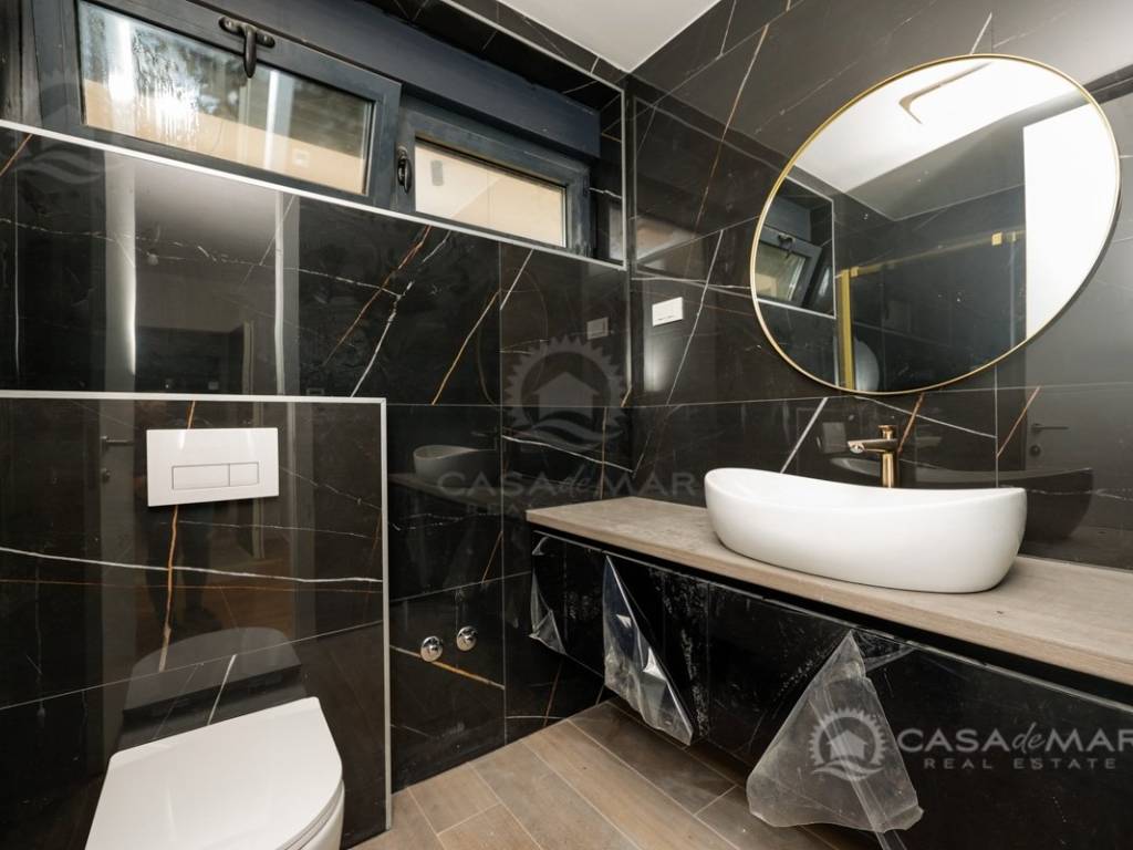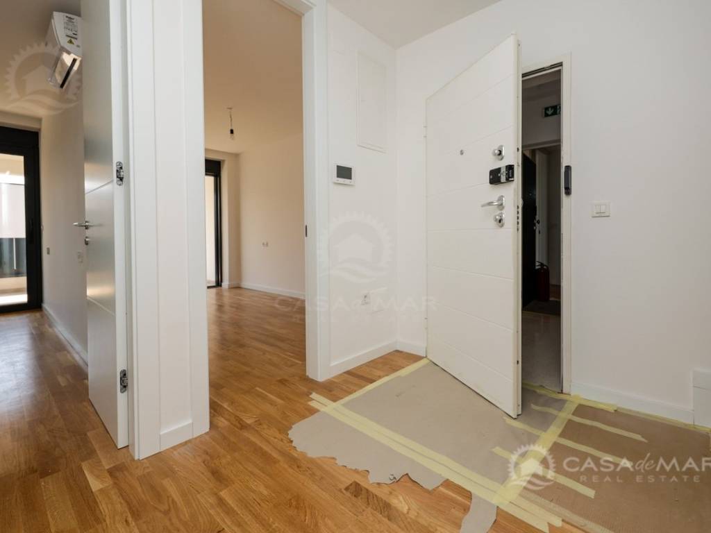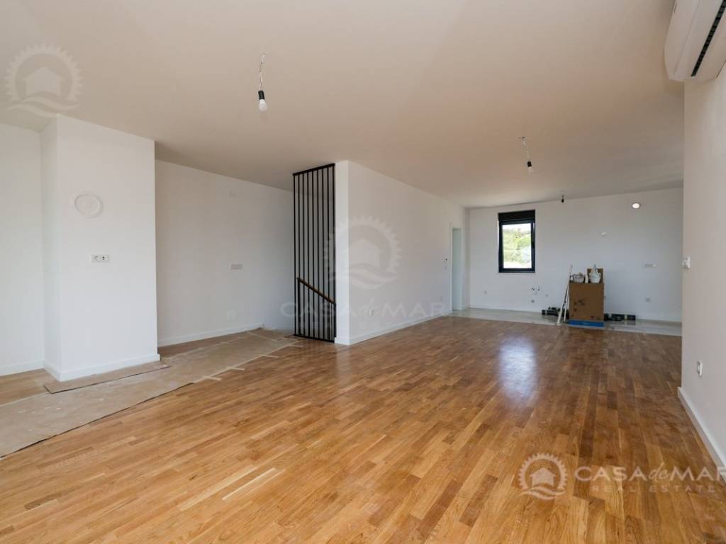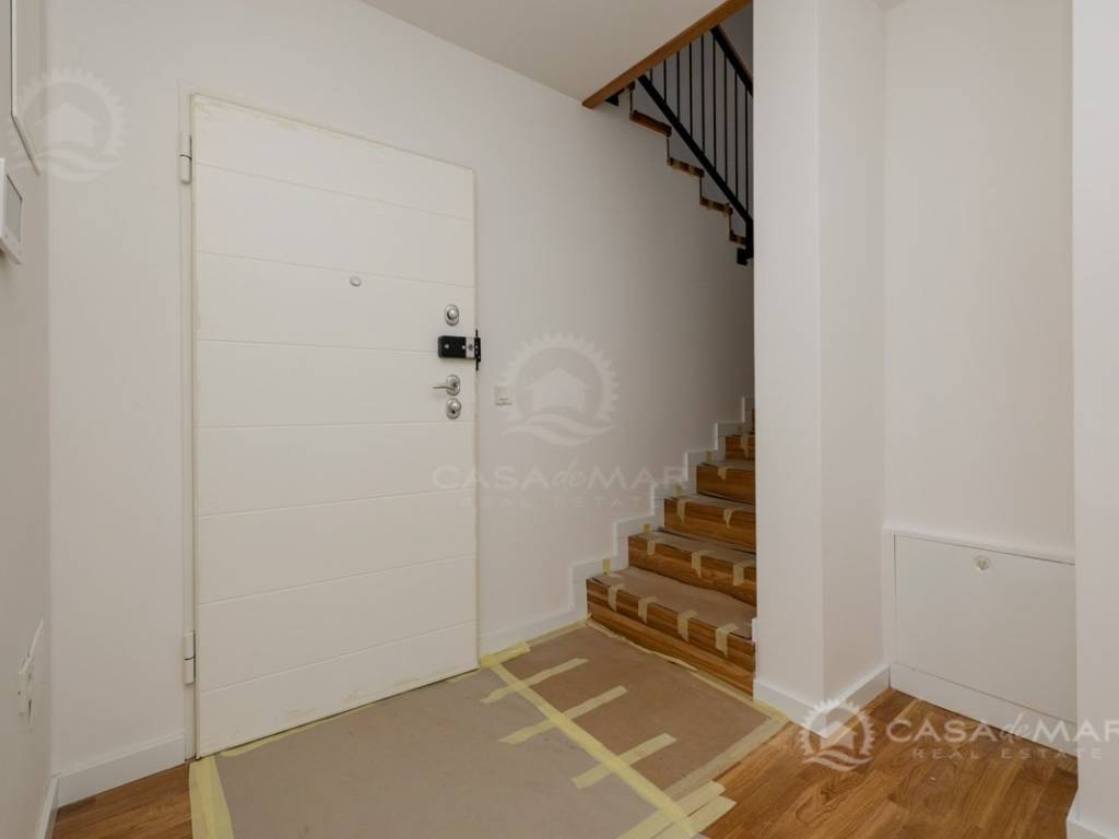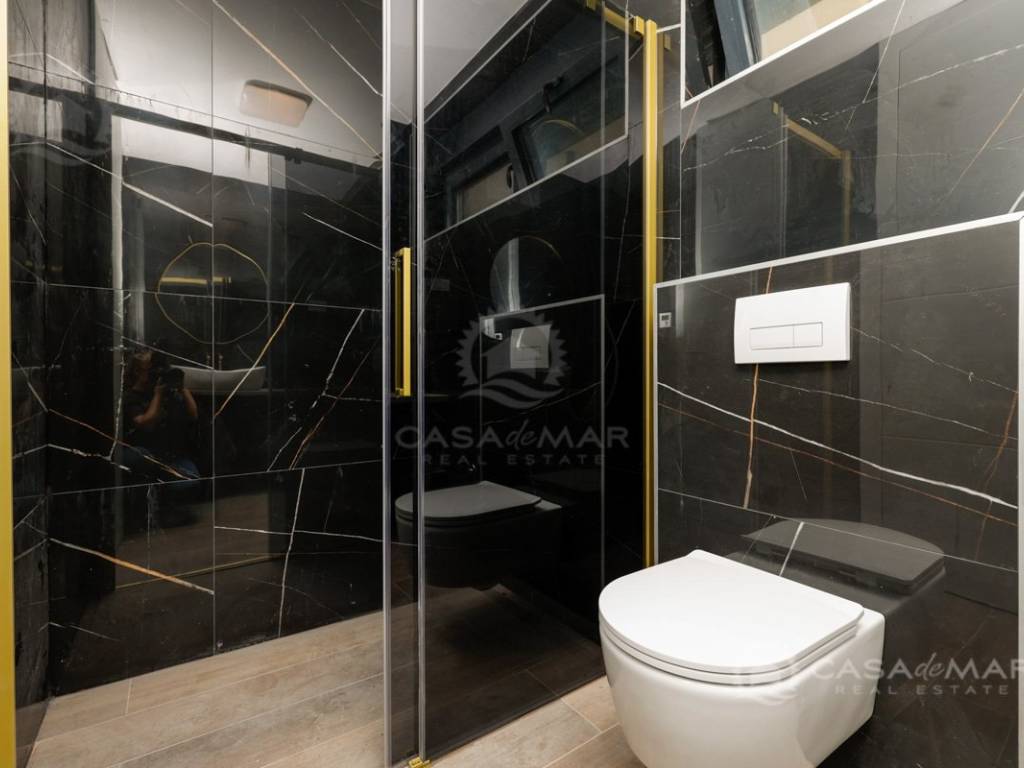 Das Apartment ist mit hochwertigen Parkett- und Keramikböden, modernen Badezimmern, ALU-Fenstern mit eingebauten Mückennetzen und elektrischen Rollläden ausgestattet. Die Beheizung und Kühlung erfolgt über eine Wärmepumpe, Fußbodenheizung und Klimaanlagen in jedem Raum, was ganzjährigen Komfort gewährleistet.