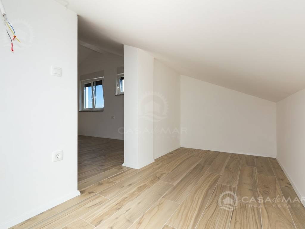 Im Erdgeschoss befindet sich ein Eingangsbereich, ein Wohnzimmer, eine Küche mit Esszimmer, eine Toilette, ein Abstellraum und ein Heizungsraum. Im ersten Stock befinden sich zwei Schlafzimmer, jedes mit eigenem Bad und zwei Terrassen. Das hohe Dachgeschoss ist als Open Space konzipiert, der sich ideal für ein Hauptschlafzimmer mit Bad und Abstellraum/Waschküche eignet und Zugang zu einer Dachterrasse bietet, die einen herrlichen Panoramablick auf das Meer bietet.