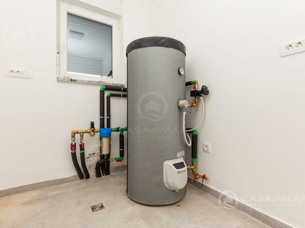 Das Anwesen wurde mit hochwertigen Materialien gebaut und ist mit Klimaanlage, Fußbodenheizung in allen Bädern und PVC-Tischlerei ausgestattet. Es besteht auch die Möglichkeit der Holzheizung mit einem vorbereiteten Schornstein. Das Anwesen ist auch mit einem großen Landschaftsgarten geschmückt, der Parkplätze für sogar mehrere Autos bietet.