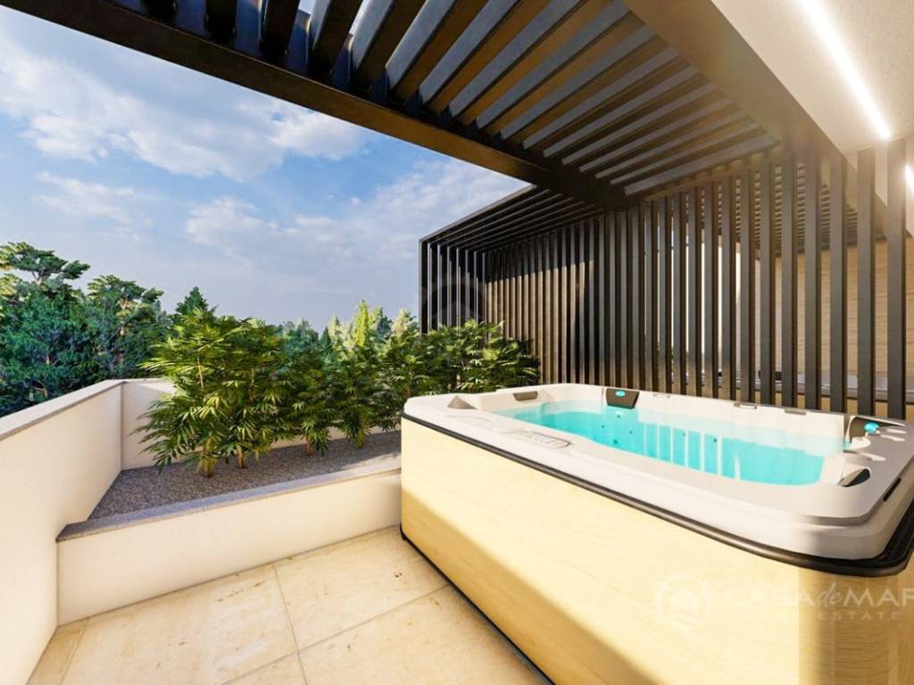 Die Immobilie wird Anfang 2024 fertiggestellt, und beim Bau werden hochwertige Materialien und Geräte verwendet. Das gesamte Haus wird über eine Fußbodenheizung verfügen, die Temperatur wird durch modernste Wärmepumpe und durch eine Klimaanlage (vier Einheiten) geregelt. Elektroautos werden die Möglichkeit fürs Aufladen haben und zu der Immobilie gehört ein Garagenplatz und ein Außenstellplatz.