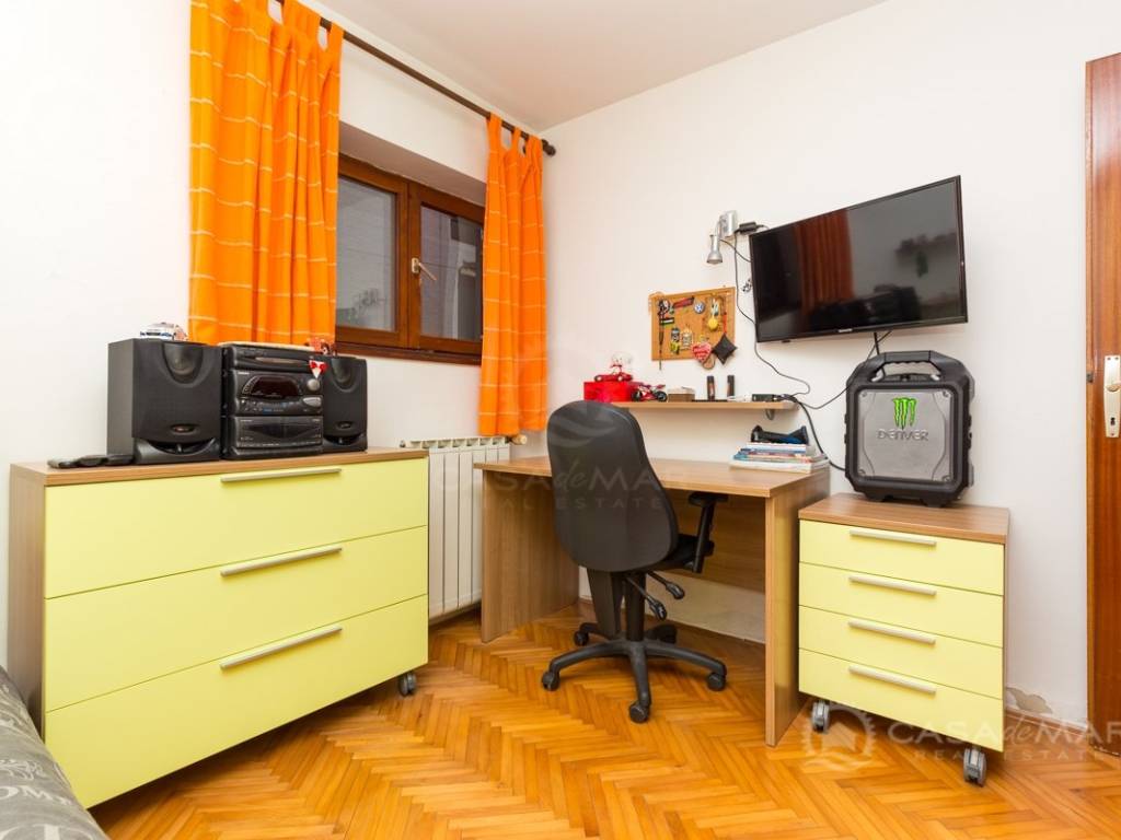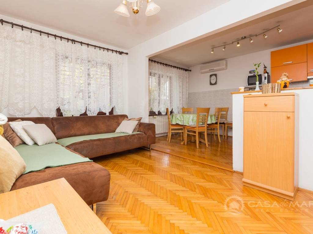 Eine Dreizimmerwohnung von 73,47 m2 befindet sich im Erdgeschoss eines Einfamilienhauses in ruhiger Lage in Crikvenica, nur 300 Meter vom Meer entfernt.