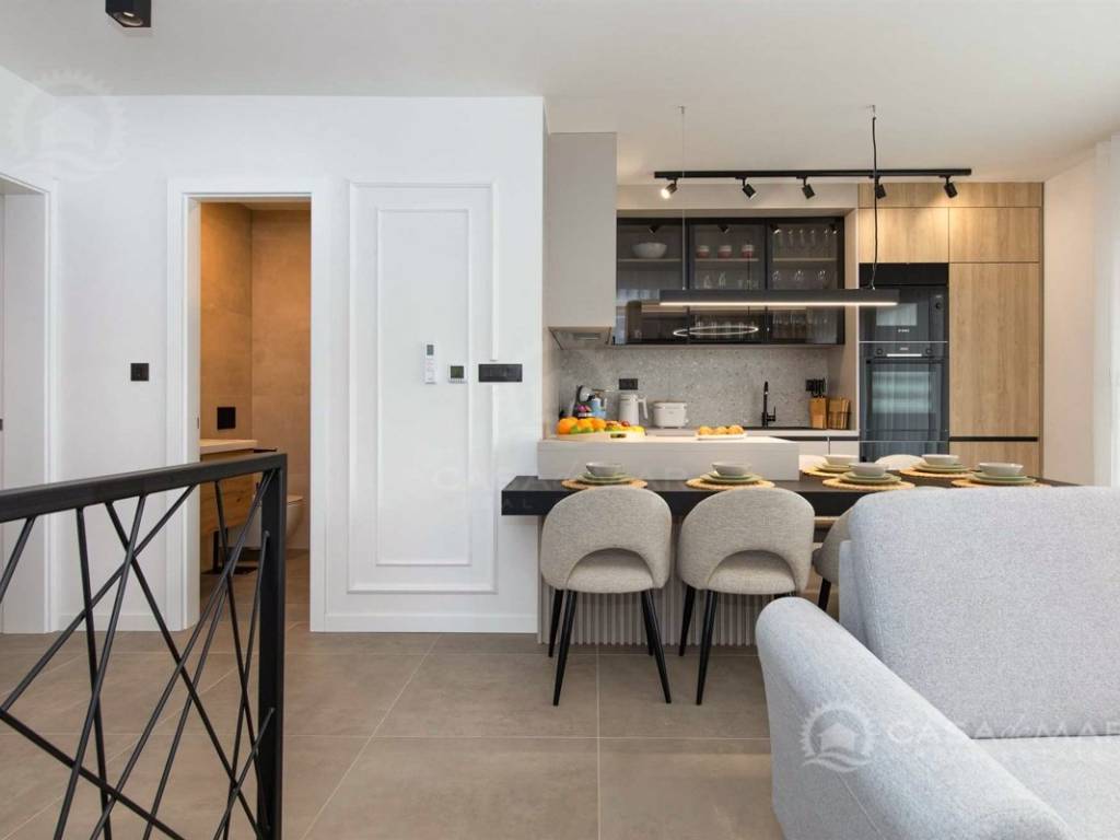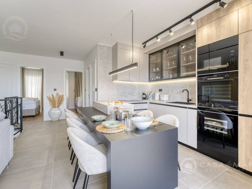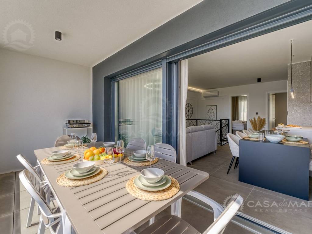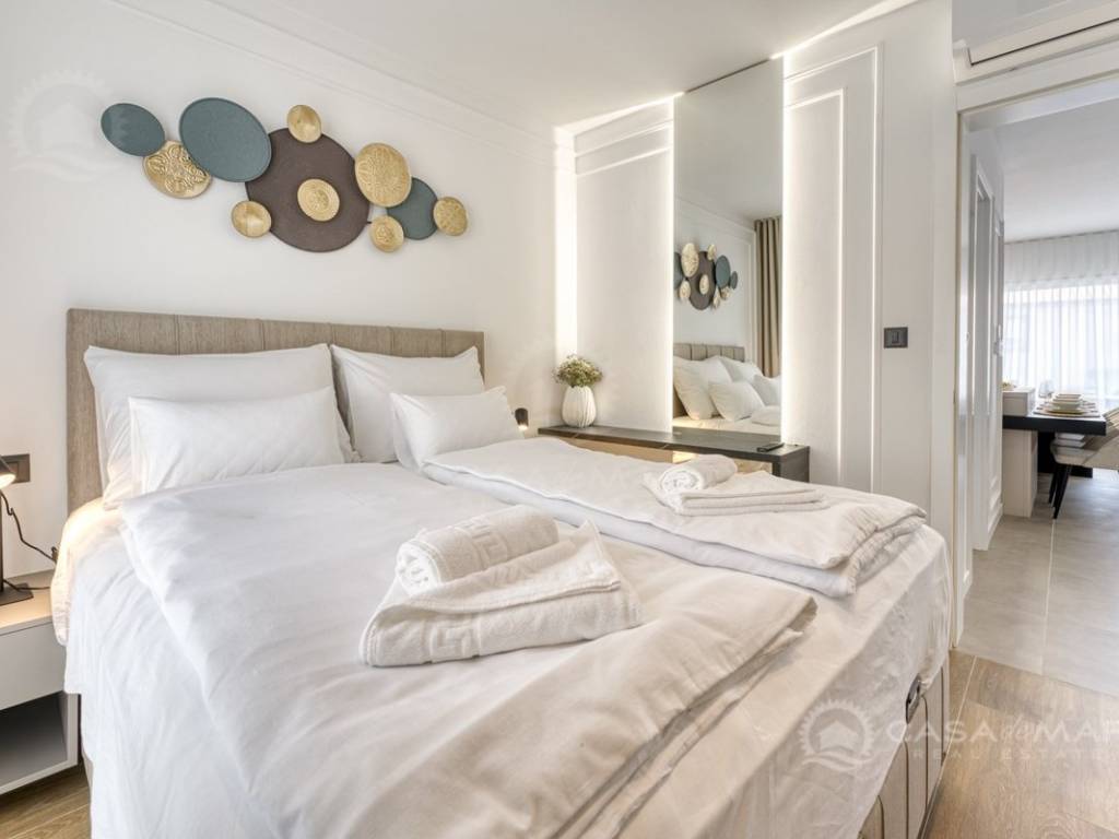 Diese Immobilie ist aus hochwertigen Materialien gebaut und mit ALU- und PVC-Zimmerei, elektrischen Jalousien, elektrischer Fußbodenheizung und Klimaanlage in allen Räumen ausgestattet. Die Wohnung ist mit hochwertigen Designermöbeln ausgestattet und wird komplett möbliert verkauft.