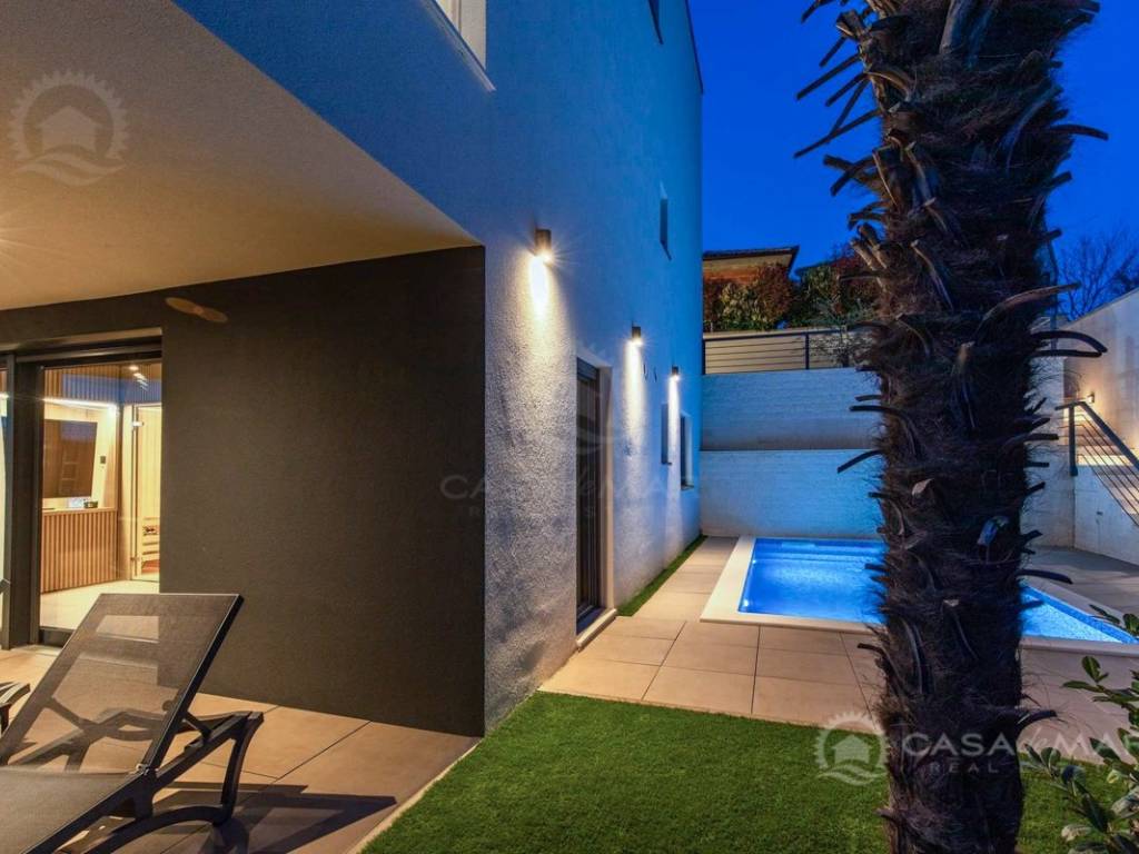 Modernes zweistöckiges Apartment mit privatem Garten und Swimmingpool.