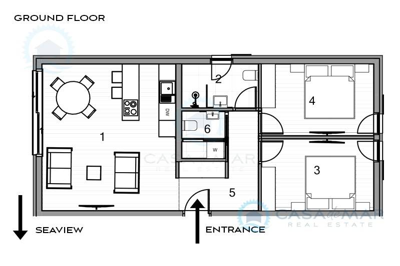 Zweizimmerwohnung im Erdgeschoss eines Neubaus, 500 m vom Meer entfernt