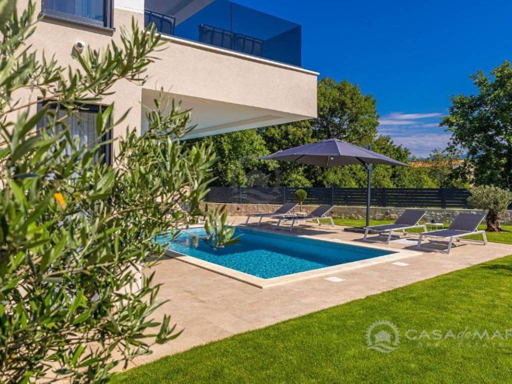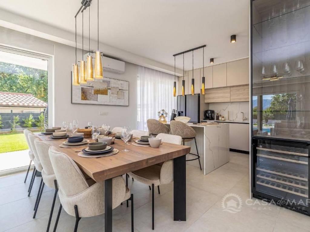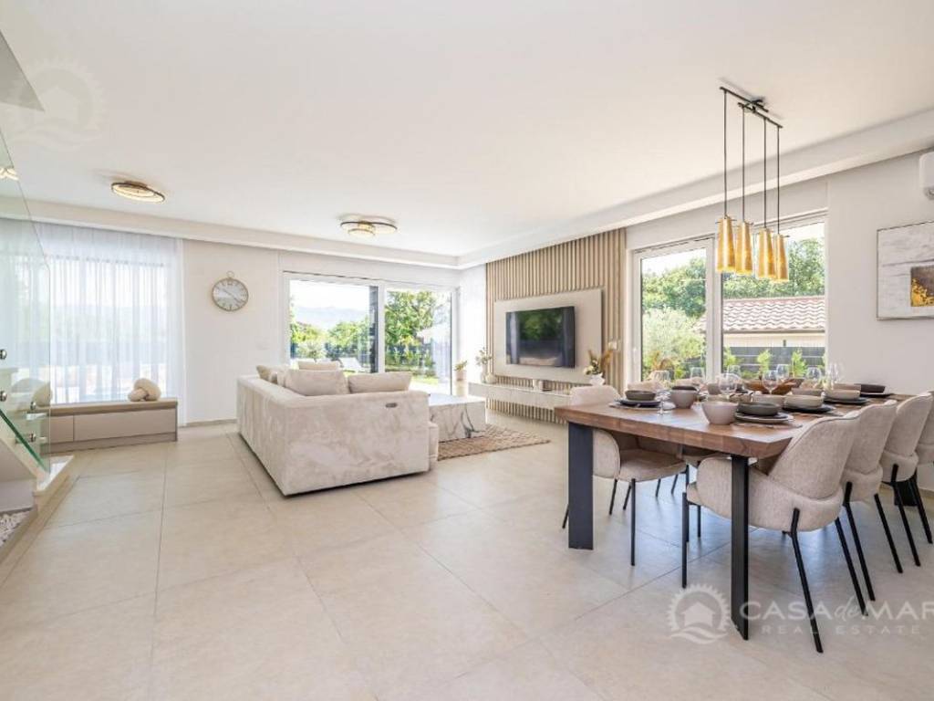 An einer ruhigen Lage in der Nähe von Njivice auf der Insel Krk steht eine moderne Doppelhaushälfte mit einer Gesamtfläche von 191 m² zum Verkauf. Es handelt sich um einen Neubau, der Geräumigkeit, funktionale Raumaufteilung und modernes Design vereint – ideal für das Familienleben oder als Investition in den Tourismus.