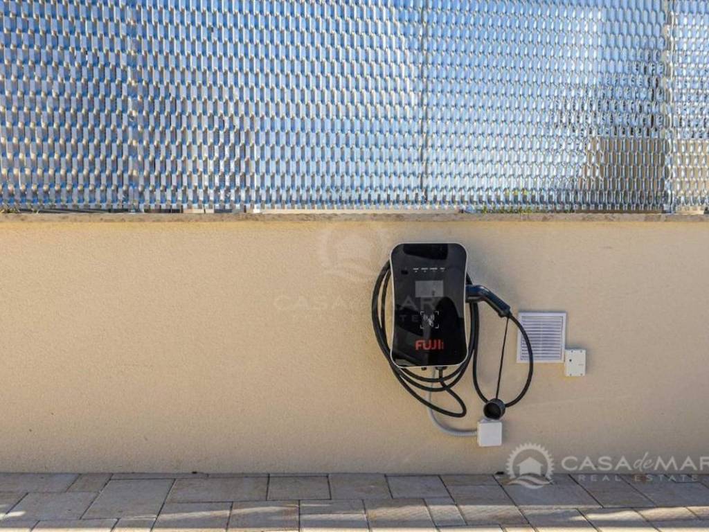 Zum Haus gehören zwei Parkplätze, zusätzlich steht eine Ladestation für Elektrofahrzeuge zur Verfügung, was diese Immobilie noch praktischer und zukunftsorientierter macht.