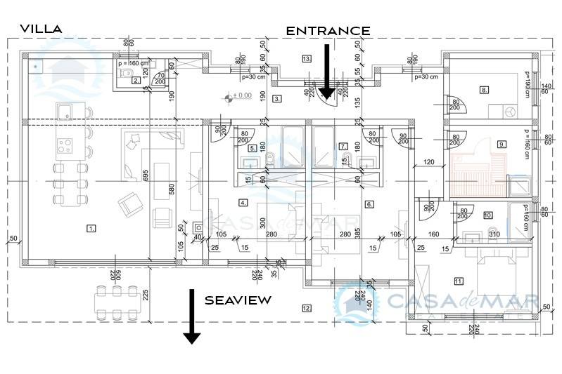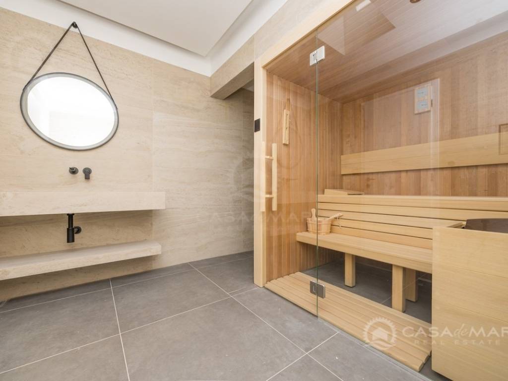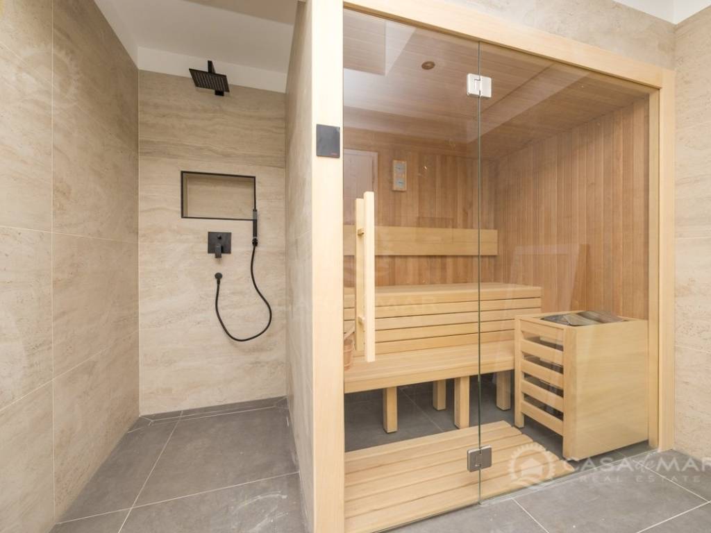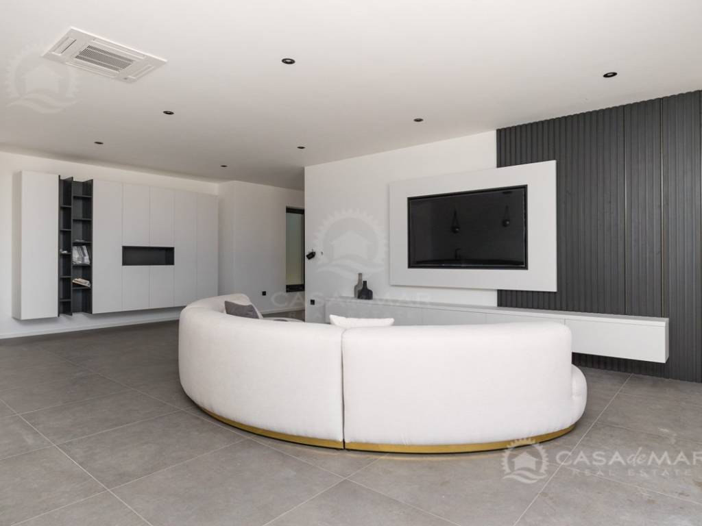 Die Villa erstreckt sich auf einer einzigen Ebene über 185,64 m² und bietet außergewöhnlichen Wohnkomfort sowie einen herrlichen Meerblick aus jedem Zimmer. Sie verfügt über ein großzügiges Wohnkonzept mit offenem Wohn-, Ess- und Küchenbereich, Flur, Hauswirtschaftsraum, Gäste-WC, drei stilvolle Schlafzimmer – jeweils mit eigenem Bad – sowie eine Sauna für maximale Entspannung. Aus allen Räumen hat man direkten Zugang zum liebevoll gestalteten Außenbereich mit atemberaubendem Meerblick.