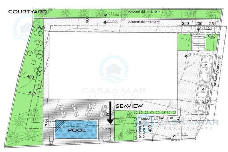 Auf dem 723 m² großen Grundstück befinden sich ein Pool (7x3 m), Sonnenterrasse, überdachte Terrasse, Sommerküche und eine gemütliche Lounge-Zone, umgeben von mediterranen Pflanzen und Palmen – ein perfekter Ort zum Entspannen mit absoluter Privatsphäre. Zwei private Parkplätze sind vorhanden, zudem besteht die Möglichkeit zum Bau einer Garage nach Vereinbarung mit dem Bauherrn.