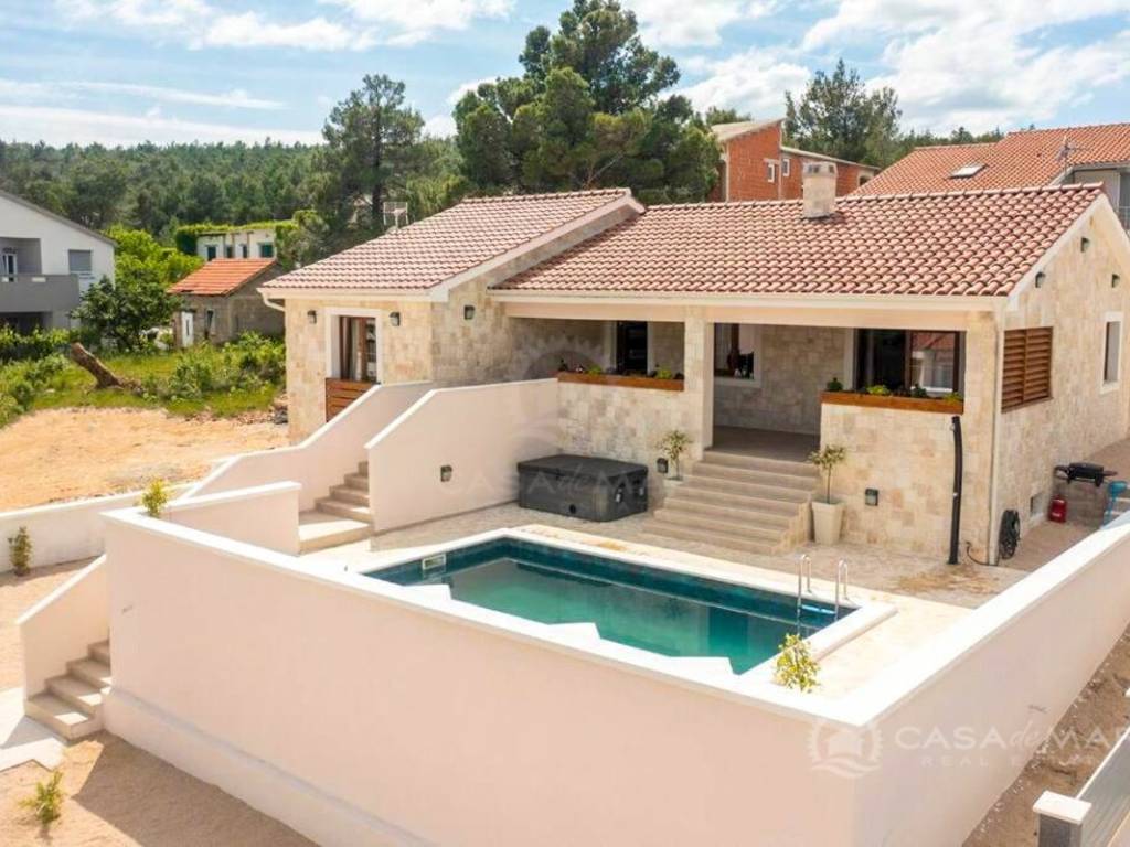 Freistehendes modernes Haus, neu gebaut mit einer Gesamtwohnfläche von 80 m2 und einer großzügigen Gartenfläche von 600 m2, befindet sich in der Nähe von Zadar, nur 100 Meter vom Meer entfernt!