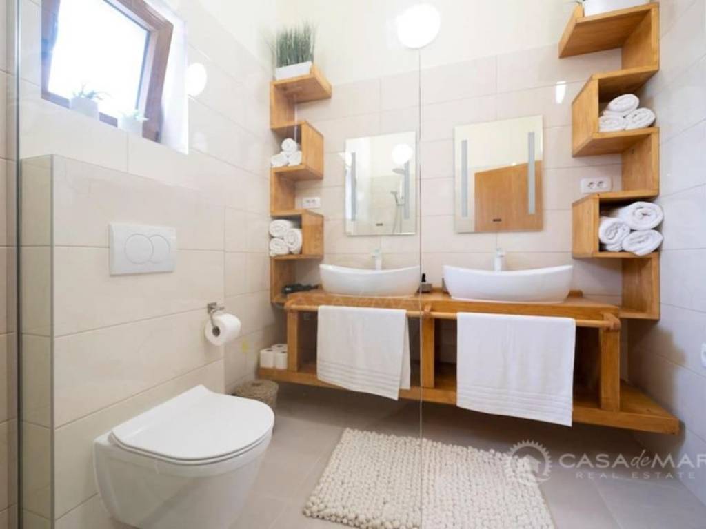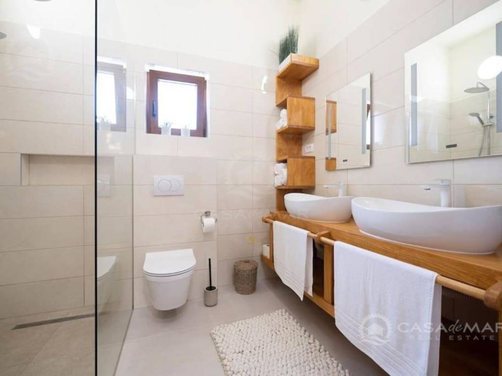 Das Haus wurde mit hochwertigen Materialien gebaut, mit modernen Sanitäranlagen sowie Klimaanlage und Fußbodenheizung sowie sorgfältig ausgewählten Möbeln ausgestattet.