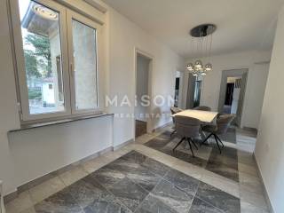 Zur Wohnung gehört außerdem eine 17 m² große Garage mit elektrisch betriebenem Tor, die Platz für ein Auto bietet; ein weiteres Fahrzeug kann vor der Garage geparkt werden. Das Gebäude verfügt über eine gültige Nutzungsgenehmigung, und dank seiner Ausrichtung ist die Wohnung äußerst hell und luftig – ideal für das Familienleben.