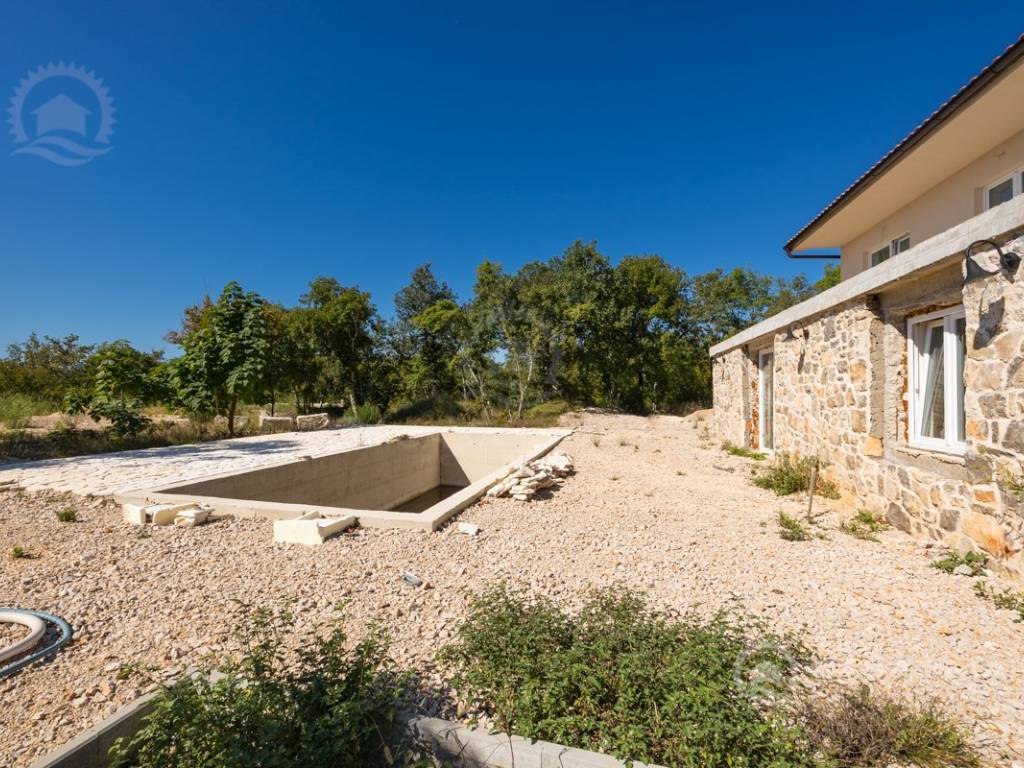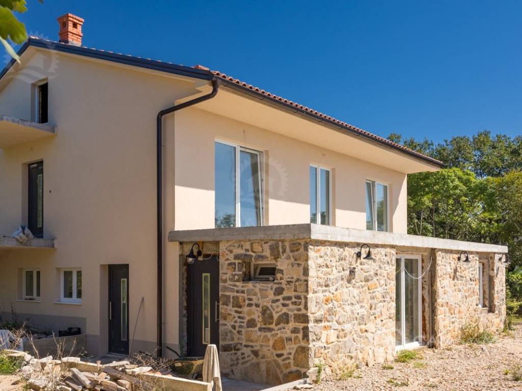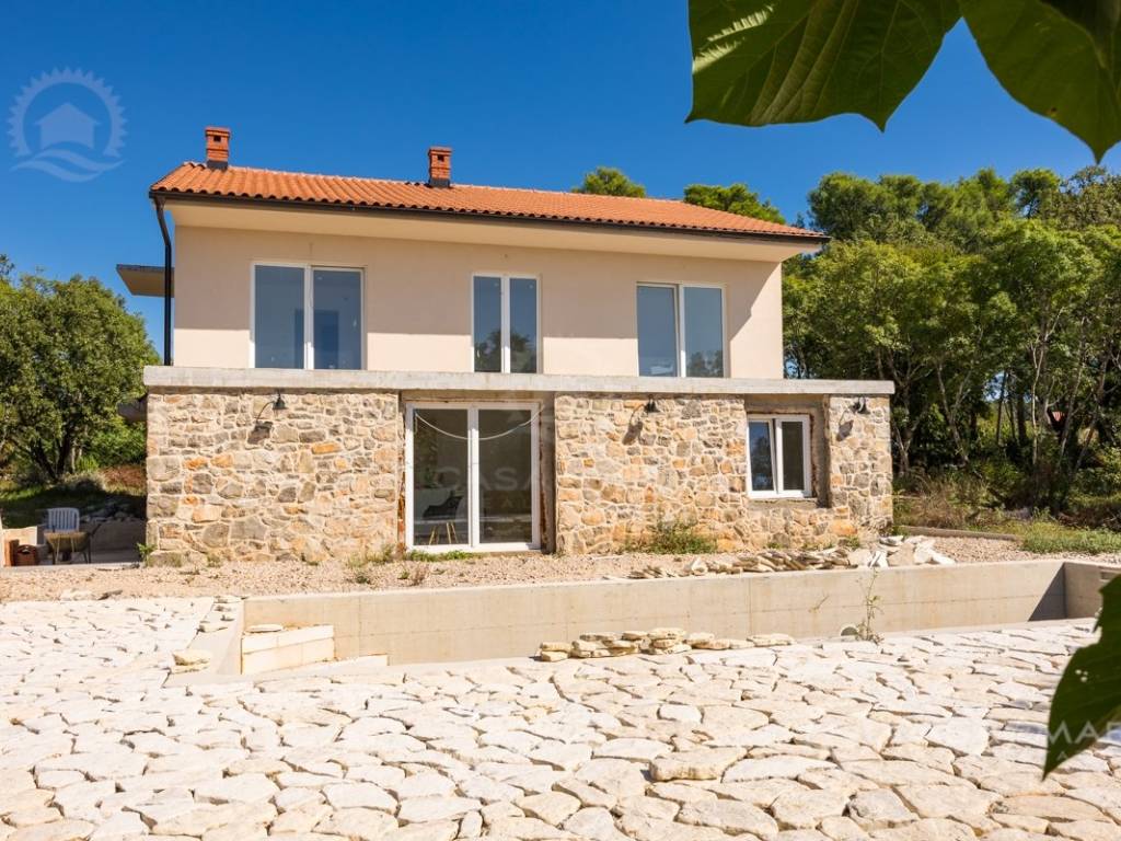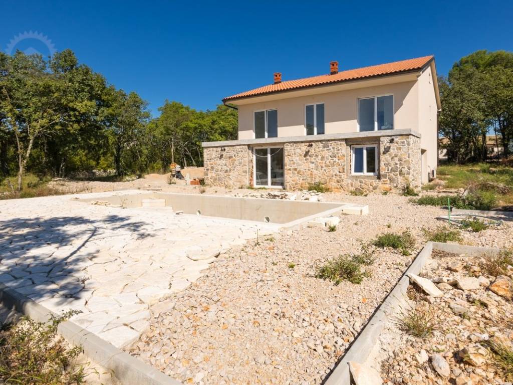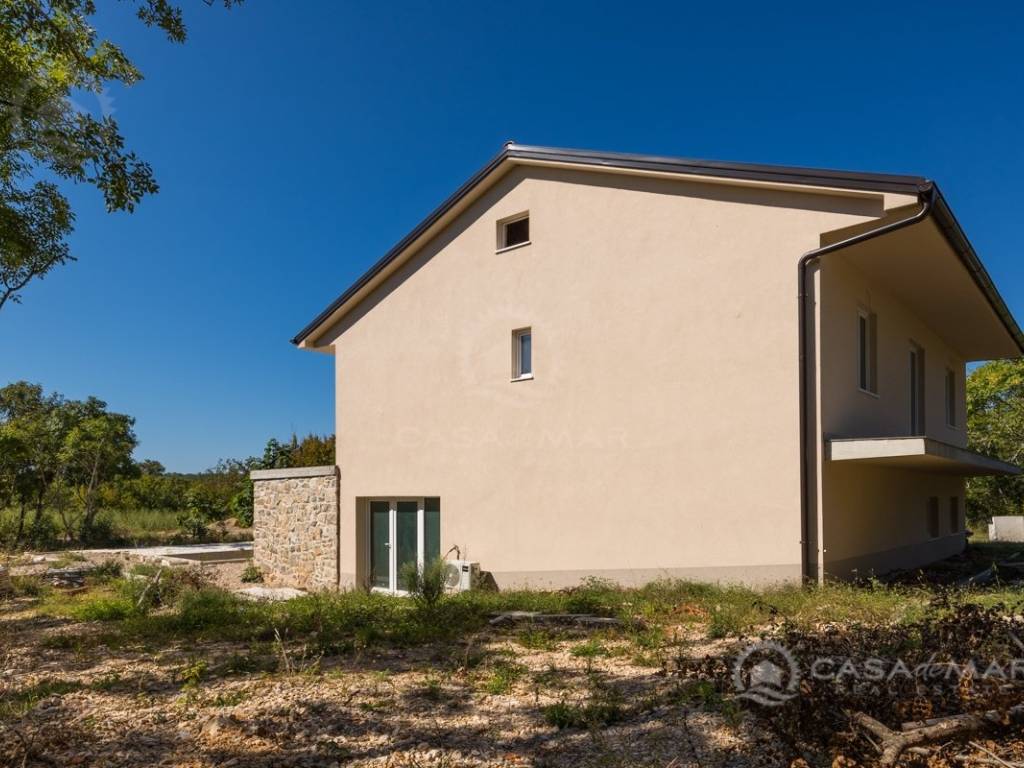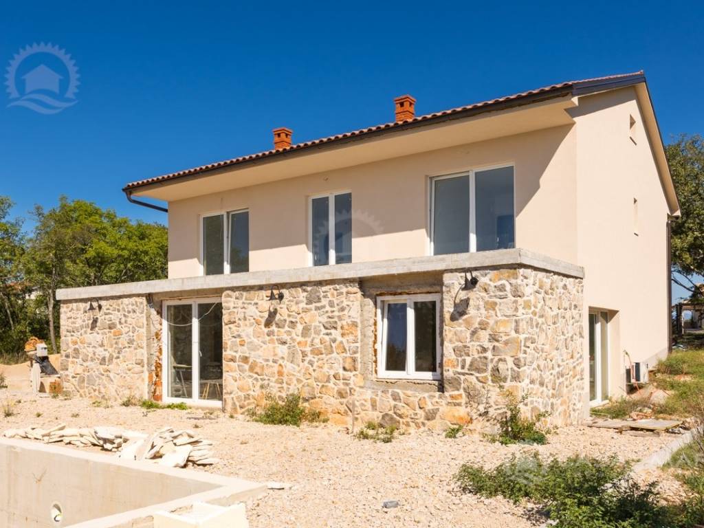 Zum Verkauf steht ein neues Haus mit einer Wohnfläche von 343 m2 und einer großen Gartenfläche von 3076 m2, in einem ruhigen Teil der Insel Krk.
