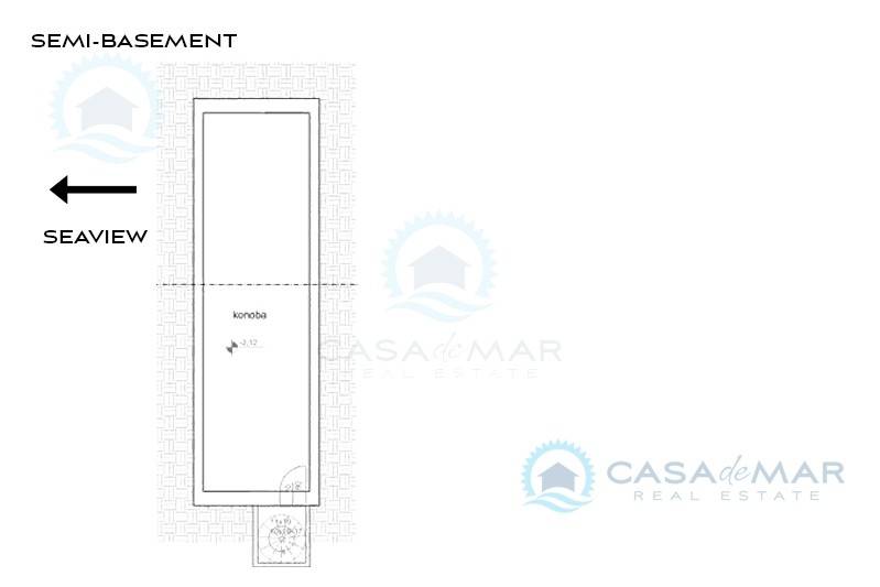 Im Untergeschoss befindet sich eine Taverne mit einer Fläche von 29,5 m2 und einer Treppe, die das Untergeschoss mit dem Erdgeschoss verbindet.