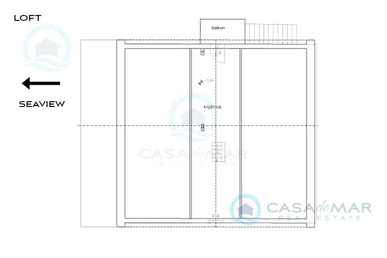 Das Dachgeschoss besteht aus einer Bibliothek und einem Balkon.
