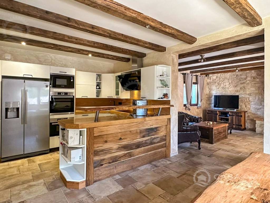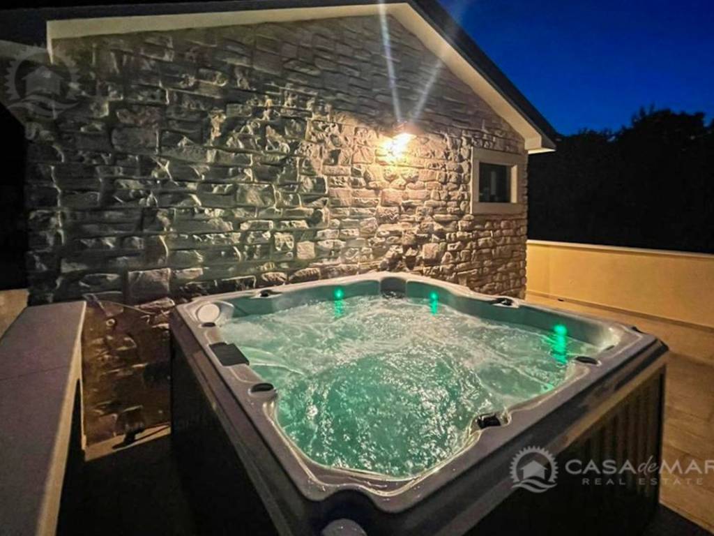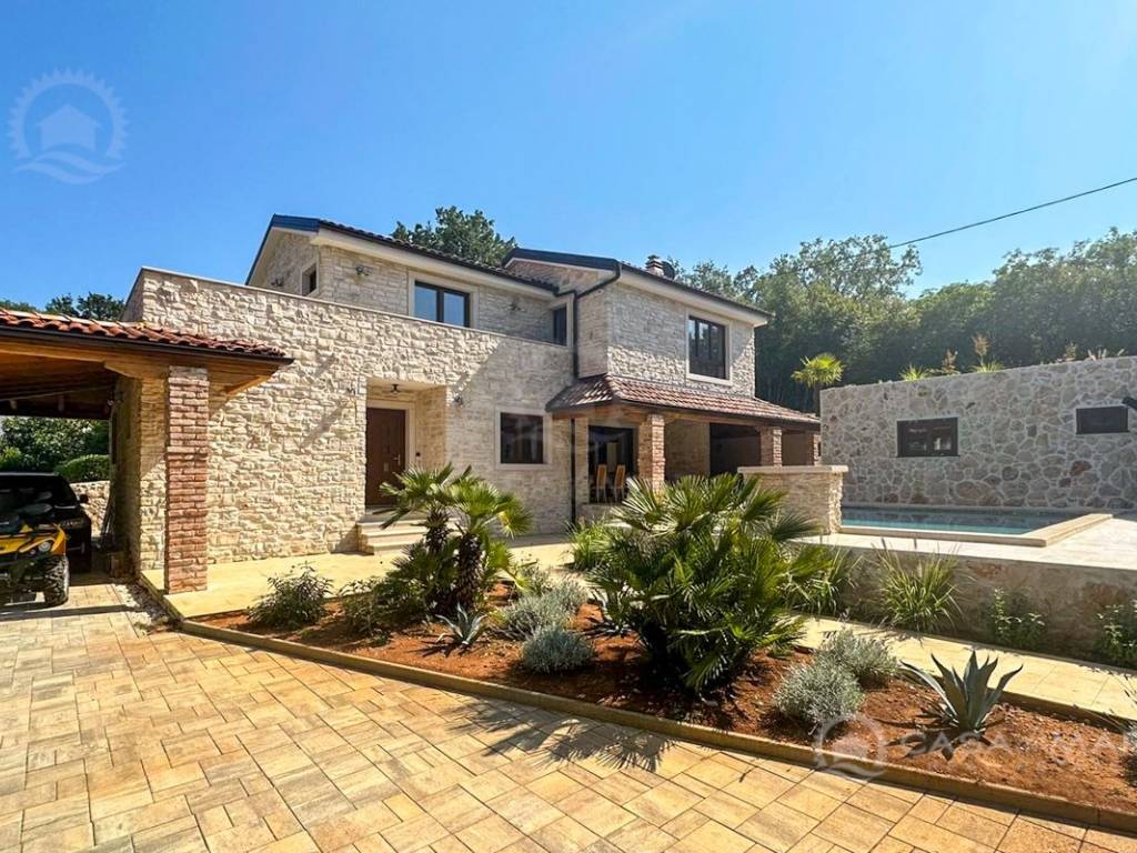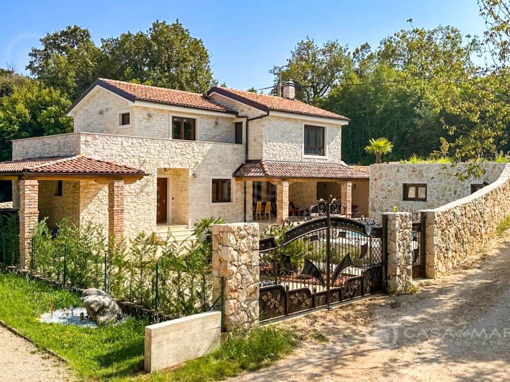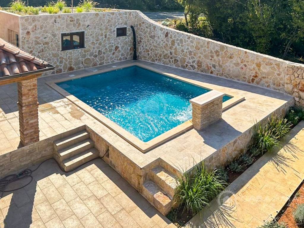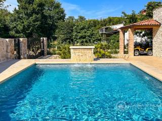 Luxuriöses Steinhaus mit einer Wohnfläche von 197 m2 und einem großen Swimmingpool (Mosaik und Salzwasser), daneben gibt es eine Liegewiese und eine Taverne von 30 m2. Das Haus besteht aus Erdgeschoss und Obergeschoss.