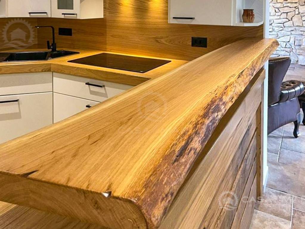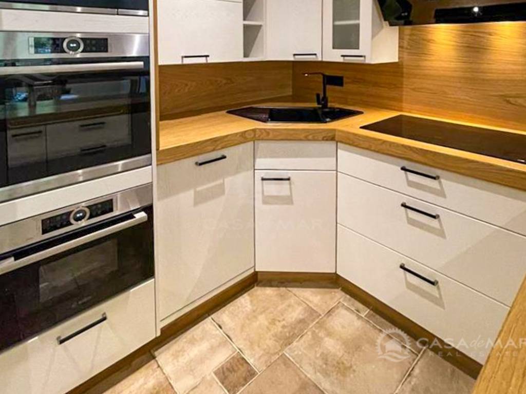 Im gesamten Haus verläuft eine Fußbodenheizung, alle Räume sind mit einer Wärmepumpe klimatisiert. Die Möbel werden aus hochwertigem Eichenholz handgefertigt.