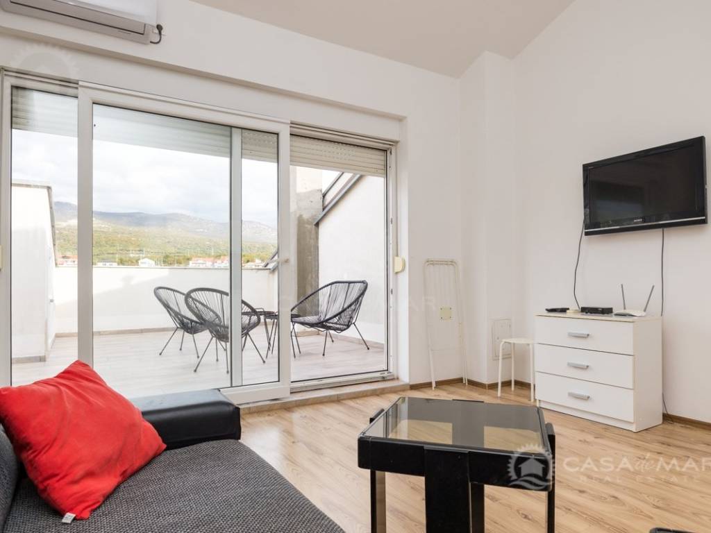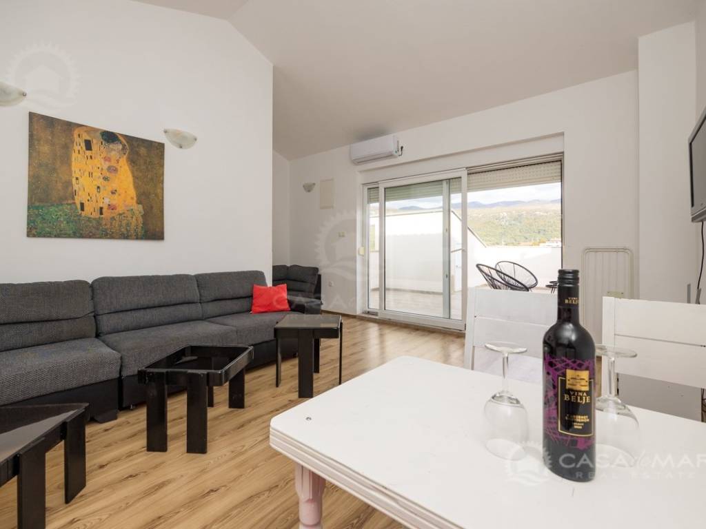 Die Wohnung im zweiten Stock mit der dazugehörigen Wohnung im Dachgeschoss mit einer Gesamtwohnfläche von 131 m2 befindet sich in Novi Vinodolski.