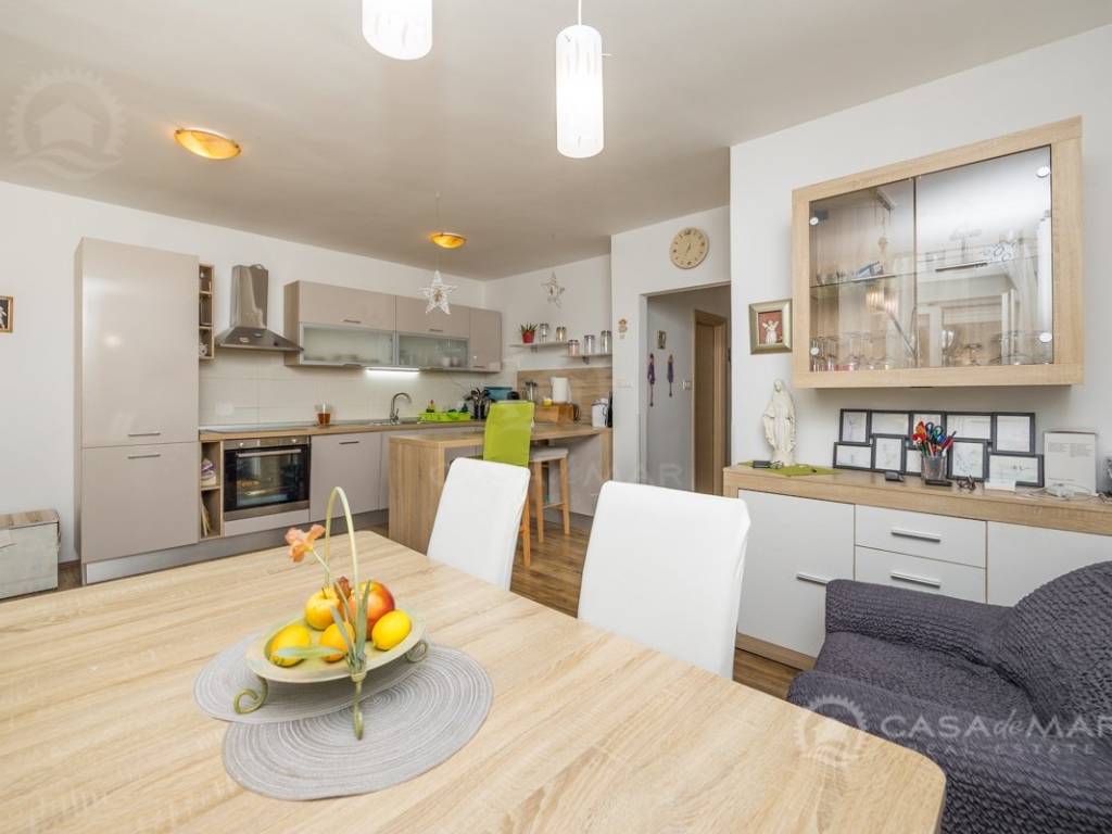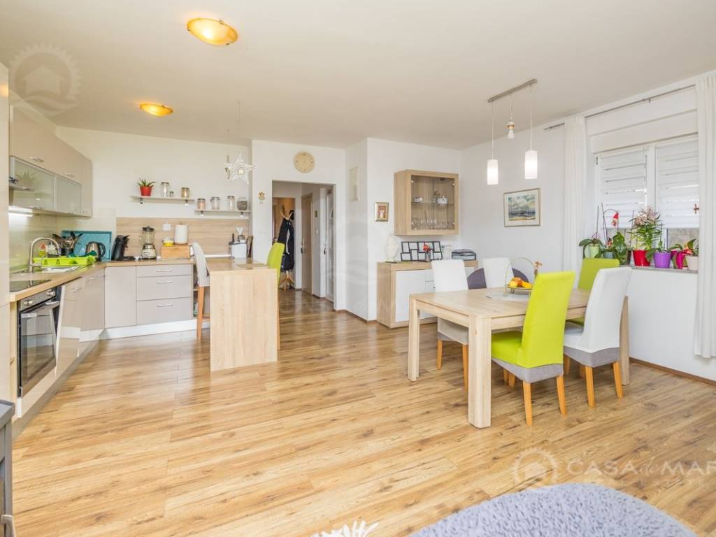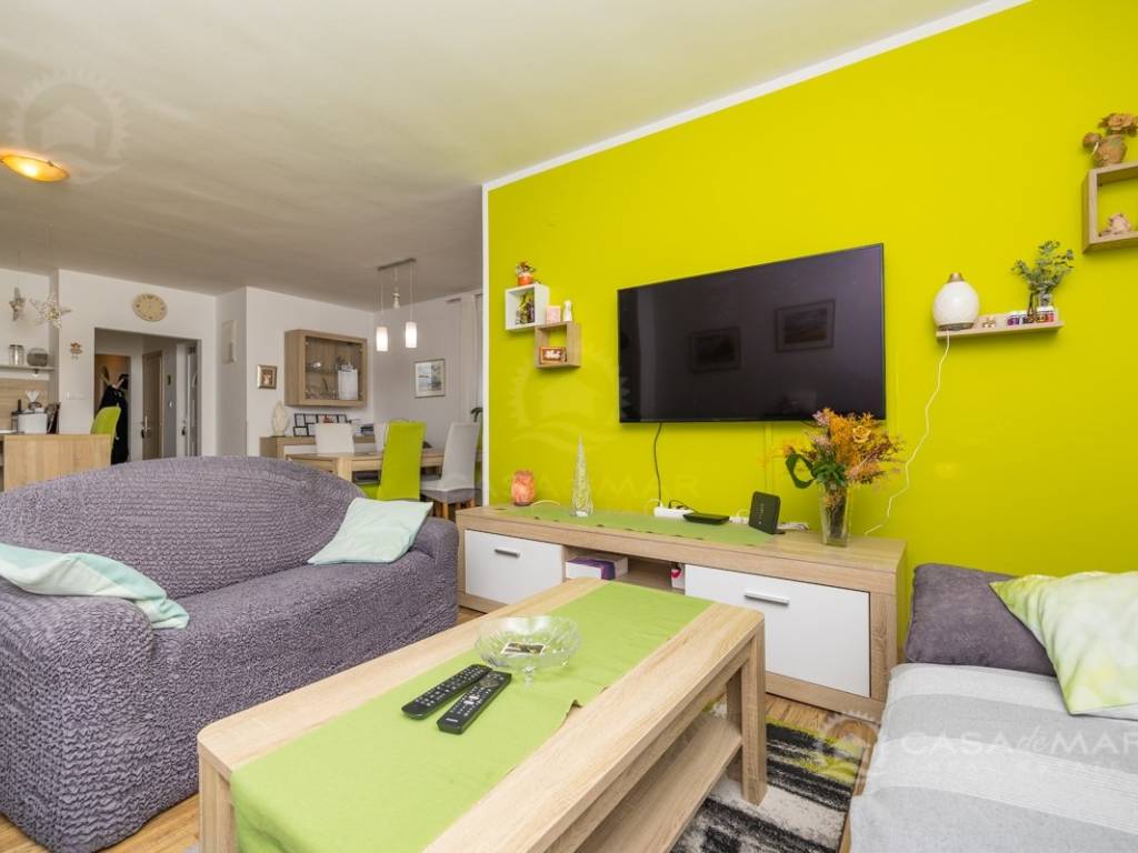 Zum Verkauf steht eine geräumige Zweizimmerwohnung mit einer Gesamtwohnfläche von 81 m2 im Erdgeschoss eines Mehrfamilienhauses. Sie verfügt über einen durchdachten Grundriss, der einen Eingangsbereich, ein geräumiges Wohnzimmer mit Zugang zu einem Balkon, eine Küche mit Essbereich, zwei komfortable Schlafzimmer und zwei modern ausgestattete Badezimmer umfasst.