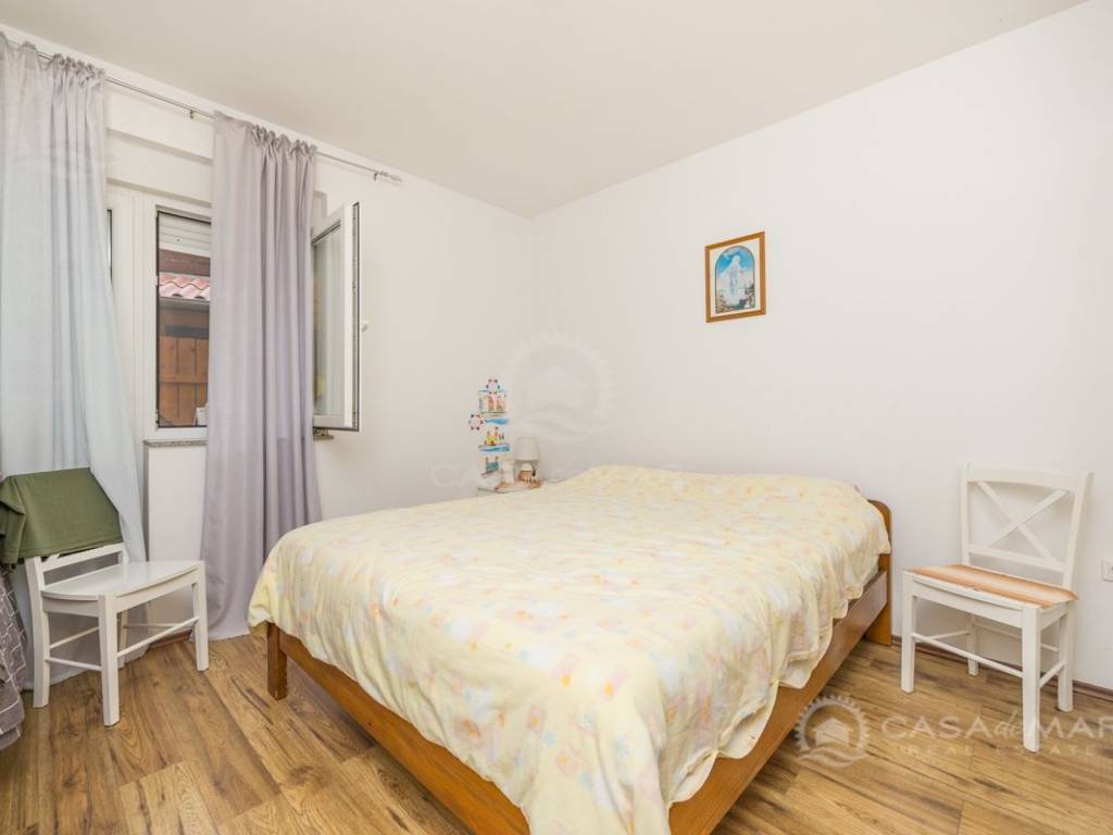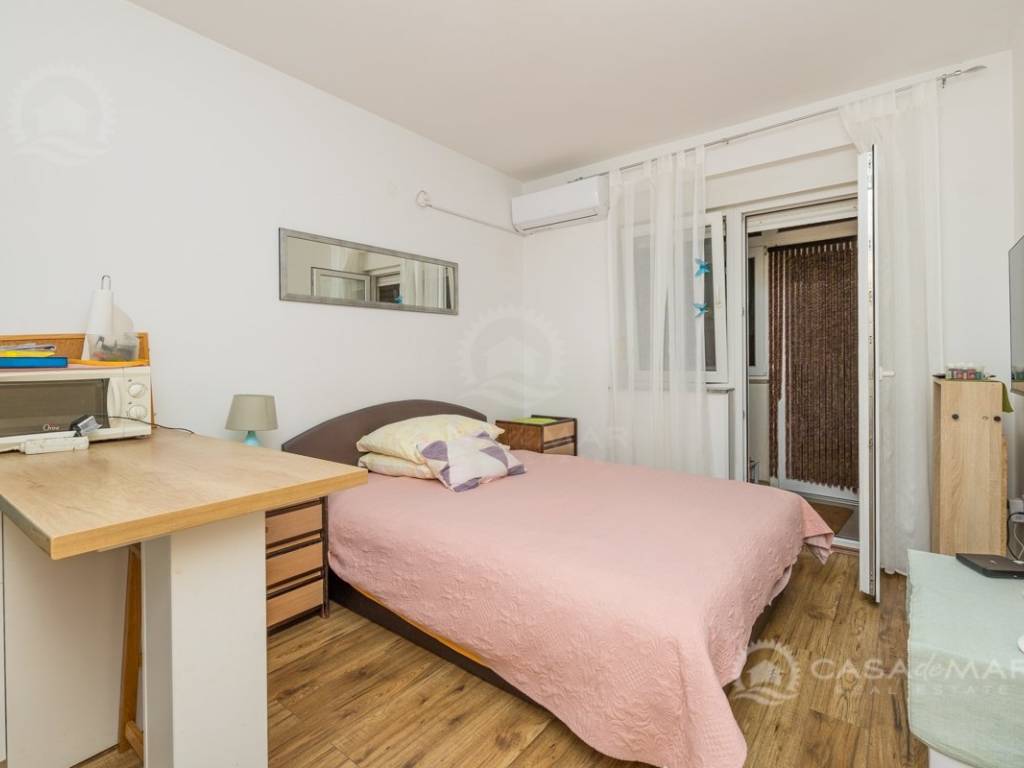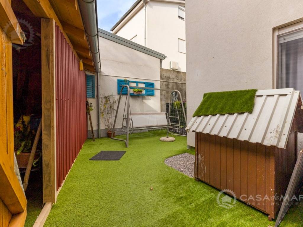 Eines der Schlafzimmer hat einen Zugang zu einem charmanten Innenhof mit einer Fläche von 50 m2, der exklusiv zu dieser Wohnung gehört. Der teilweise überdachte Teil des Innenhofs bietet zusätzlichen Raum zum Genießen, und auf dem gemeinsamen Teil befindet sich ein Grillbereich, ideal zum geselligen Beisammensein und Entspannen.