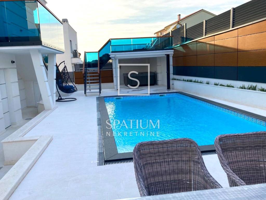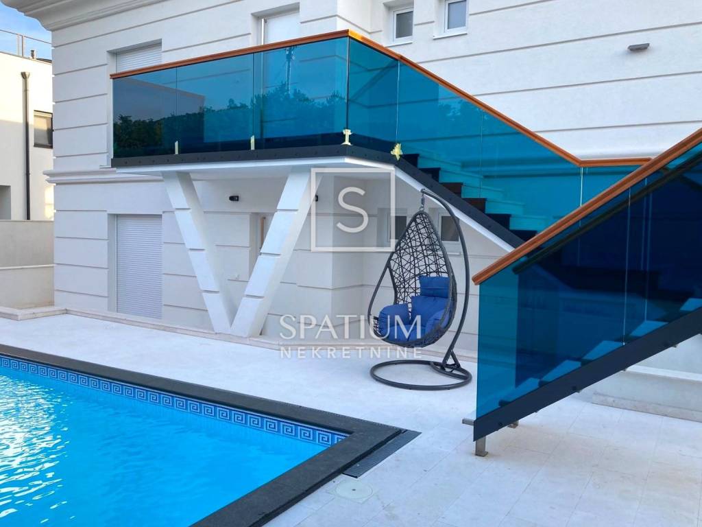 Crikvenica, ein freistehendes Designerhaus im städtischen Teil von Crikvenica mit Meerblick. Im ersten und zweiten Stock befinden sich Wohnungen mit jeweils drei Schlafzimmern und einem Badezimmer sowie einem großen Wohnzimmer mit Esszimmer und Ausgang zur Loggia. Hinter dem Haus gibt es einen Swimmingpool, einen Whirlpool und eine Liegewiese. Das Haus ist komplett mit Designermöbeln eingerichtet und wird als solches verkauft. Im gesamten Haus sind Fußbodenheizung und Klimaanlage von Daikin installiert. Der Hof ist komplett dekoriert und mit Steinen gepflastert und verfügt über 4 Garagen mit einem großen Parkplatz, vor denen mehrere Autos geparkt werden können. Sonne, frische Luft und der Geruch von Salz sowie grüne Parks und Promenaden sind unwiderstehliche Gründe, an die Riviera von Crikvenica zu kommen. Crikvenica ist ein erfahrener und weiser Geschichtenerzähler, seine reiche Geschichte beflügelt die Fantasie, Plätze und Straßen verwandeln sich in Open-Air-Bühnen, die Gastronomie zeugt von der Verflechtung von Tradition und Moderne, einer Kombination aus unwiderstehlichen Aromen des Mittelmeers und einem unverzichtbaren Tropfen Wein aus das Vinodol-Hinterland. Charmante kleine Touristenstädte heißen hier jeden willkommen: Jadranovo, Dramalj und Selce! Die Riviera von Crikvenica bietet Sportbegeisterten, Erholungssuchenden und Anhängern eines gesunden Lebensstils zahlreiche Herausforderungen. Wenn Ihnen die Aktivitäten langweilig werden, suchen Sie Ruhe in der Umarmung des Meeres. Für weitere Informationen wenden Sie sich bitte vertrauensvoll an uns.