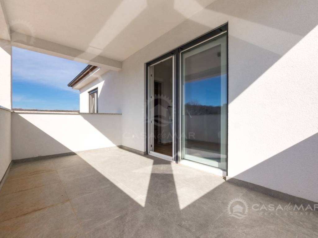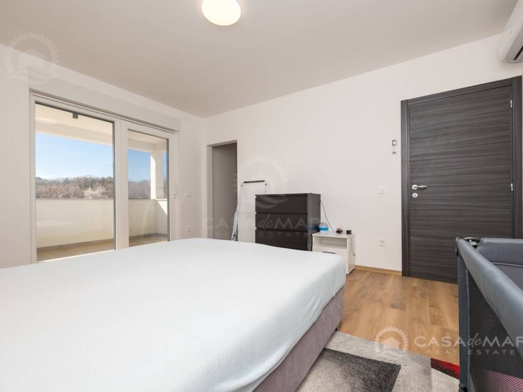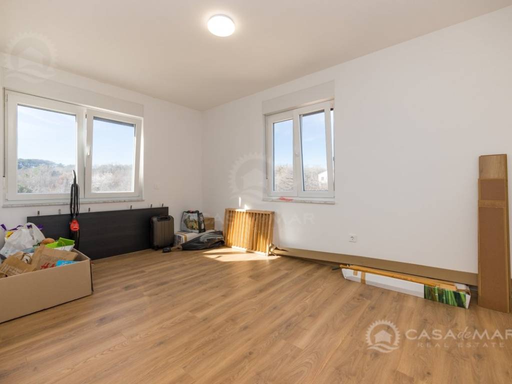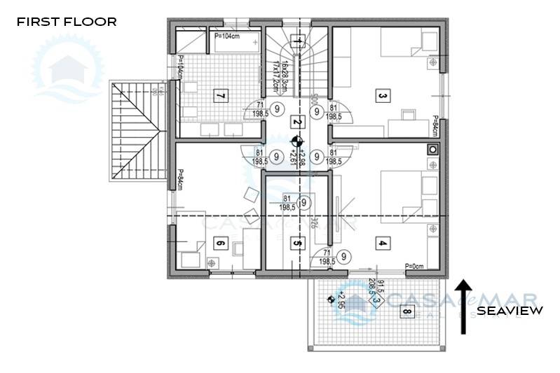 Im ersten Stock befinden sich drei Schlafzimmer und ein Badezimmer. Eines der Schlafzimmer, das Hauptschlafzimmer, verfügt über einen begehbaren Kleiderschrank und Zugang zum Balkon.
